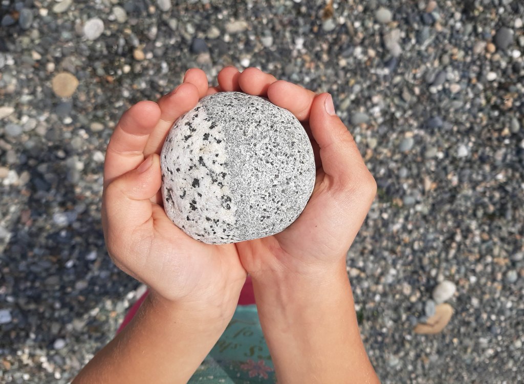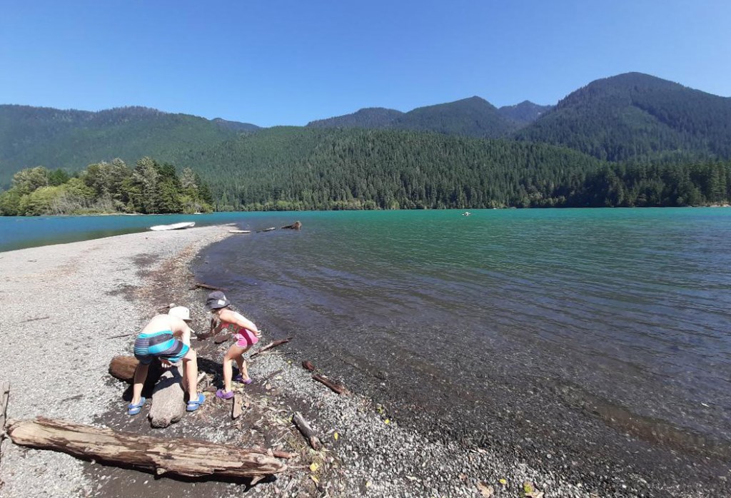 Drogą Engle i następnie Hill Road podjeżdżamy do lokalnej plaży (Ebey’s Landing wayside), gdzie dzieciaki mogą chwilę potaplać się w piachu i poprzekładać kamienie i kłody drzew wyrzuconych przez sztormowe fale. W przeciągu 30 minut na plaży powstaje „super spa” …. w nagrodę za morderczy trud jaki wczoraj ponieśli na szlaku, dzieci serwują mamie akupunkturę z patyków i masaże pleców wielkimi otoczakami, po którym to obolała mama ledwo wstaje z miejsca.