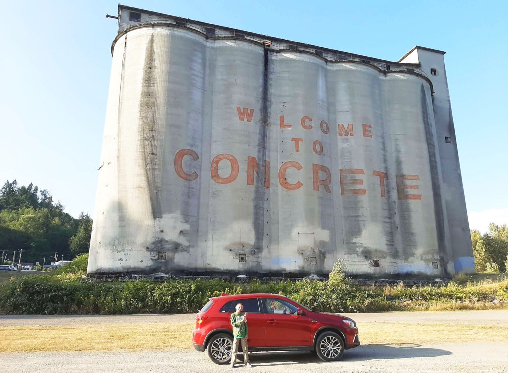 Zabalować tu długo nie możemy bo czeka nas ponad godzinna jazda do hotelu w Concrete, gdzie za kilka godzin zjawią się również Justyna z Zosią – 2 superhikerki z Chicago😊. Wjeżdżamy do miasteczka powitani przez majestatyczny silos z napisem „Welcome to Concrete”.