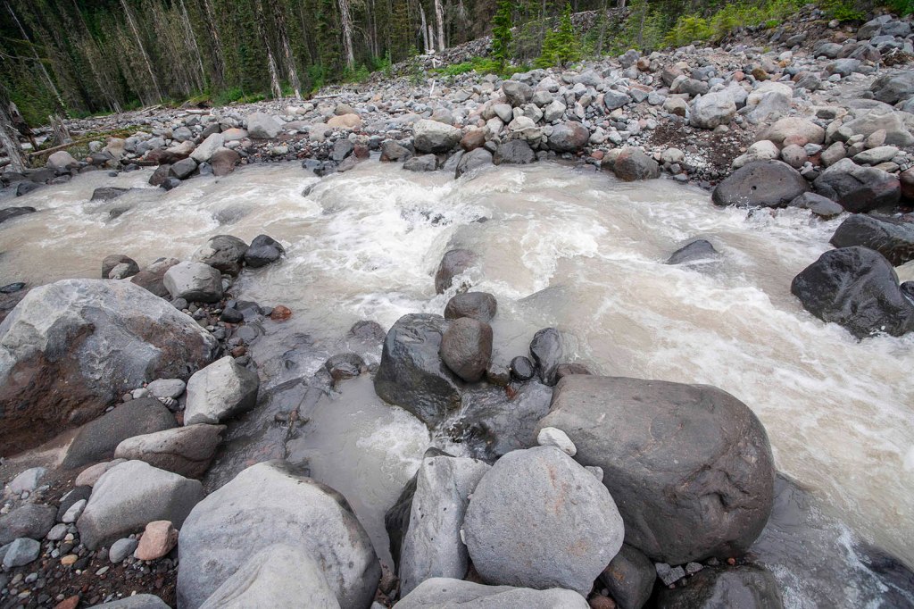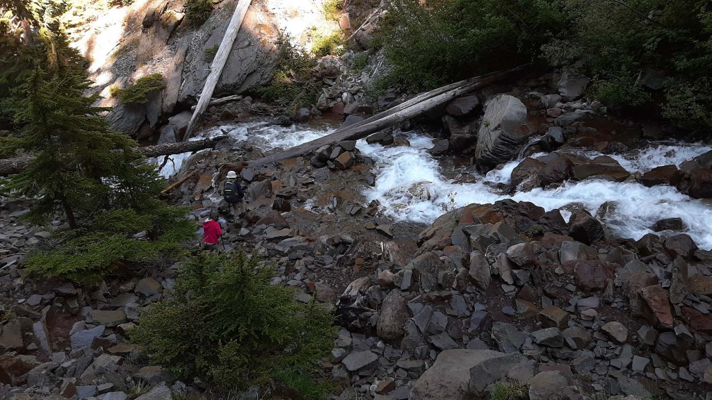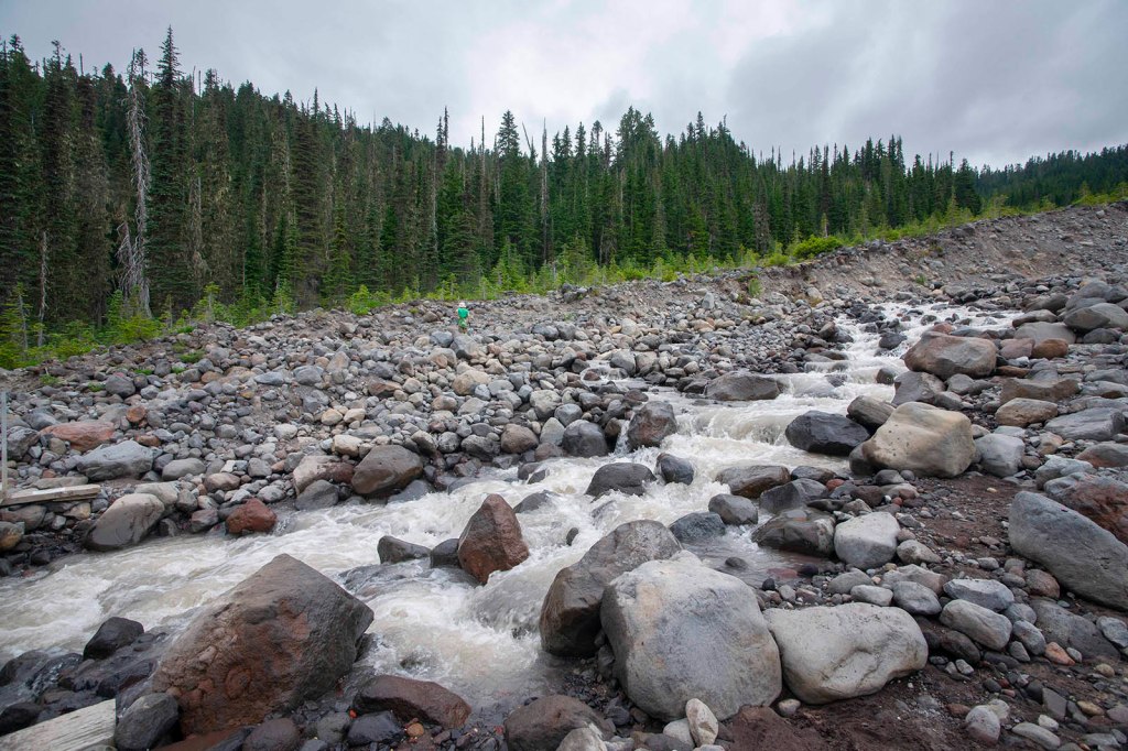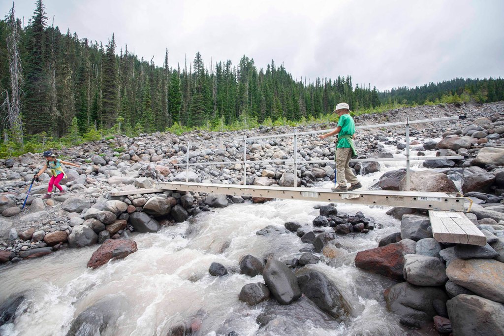 Przechodzimy następnie przez Rocky Creek, nad którym rozstawiony jest tymczasowy metalowy mostek.