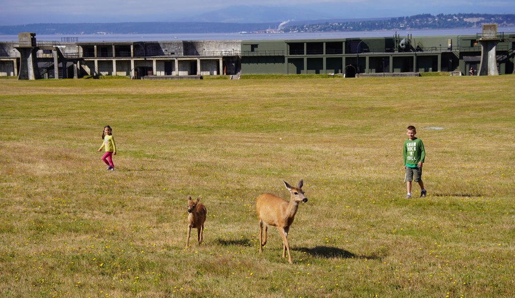 Ze względu na tzw. „nieprzeciąganie struny” funduje dzisiaj dzieciakom (i sobie) dzień leniwcowy😊. Z powodu opóźnienia naszego samolotu musieliśmy pierwszego dnia zrezygnować z odwiedzeina bunkrów, co postanawiamy nadrobić właśnie dzisiaj. Jedziemy bezpośrednio do parku stanowego Casey ($10/bilet 1 dniowy lub całoroczny Discovery Pass $30), w którym to już o 9 rano stawiamy się w pełnej gotowości. Dwie godziny biegamy razem z jelonkami po pozostałościach obronnych, których tu nie brakuje.