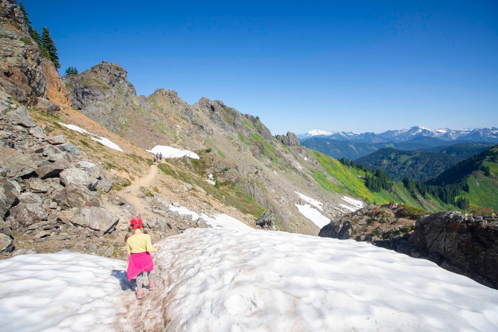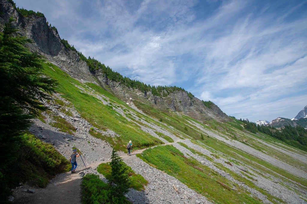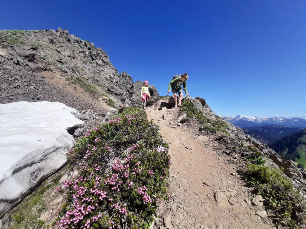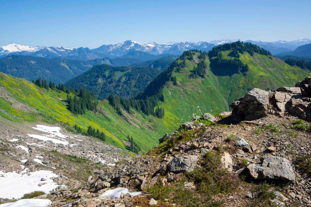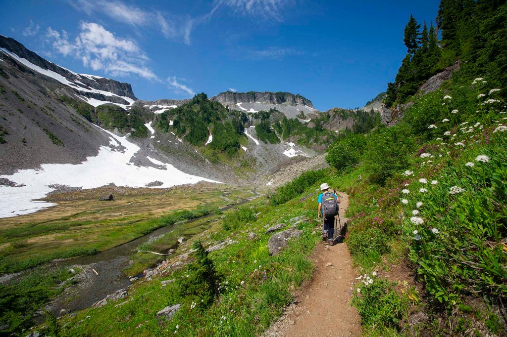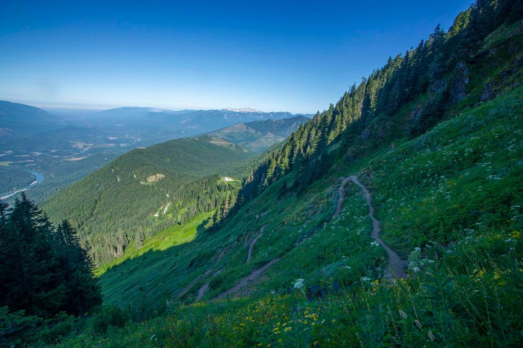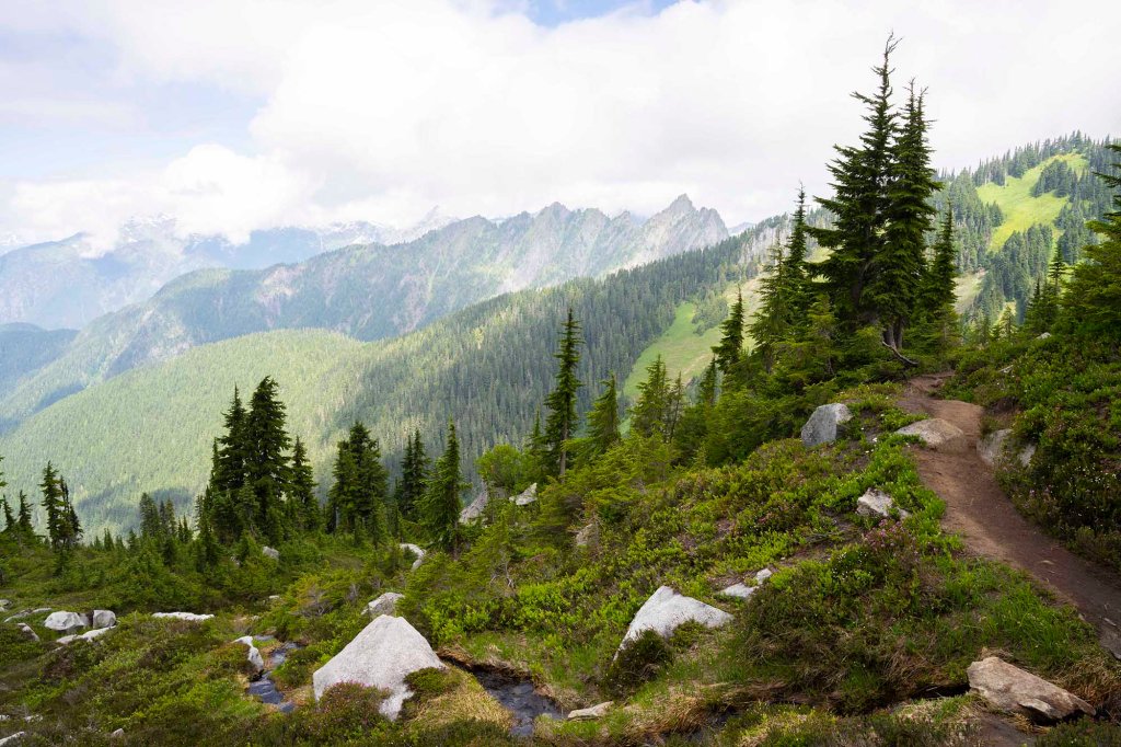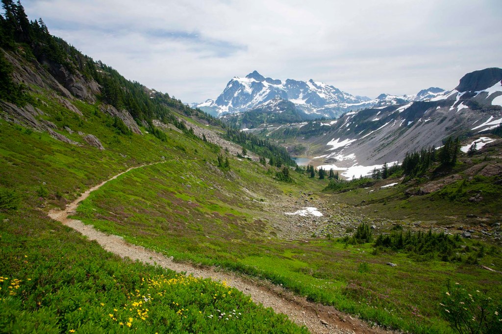 Wspinaczkę upiększają niesamowicie różnorodne kwitnące kwiaty i pachnące zioła takie jak: fireweed, valerian, penstemon, paintbrush, czy scottish bluebell. Widok z serpentyn mamy na doliny rzek Skagit and Sauk.