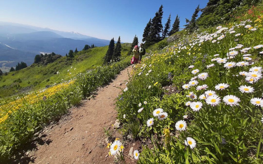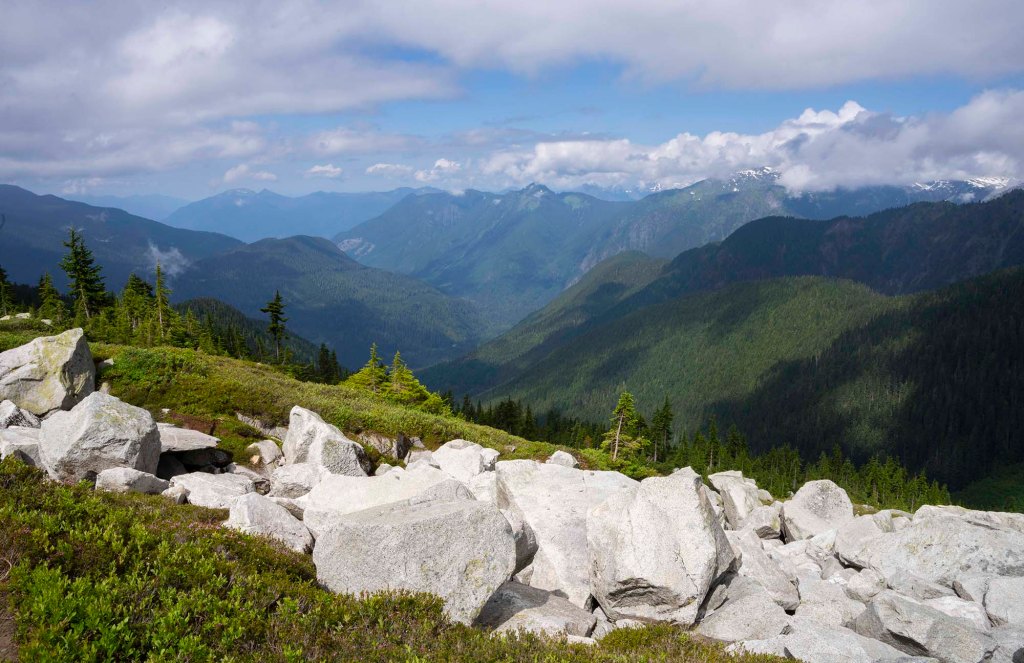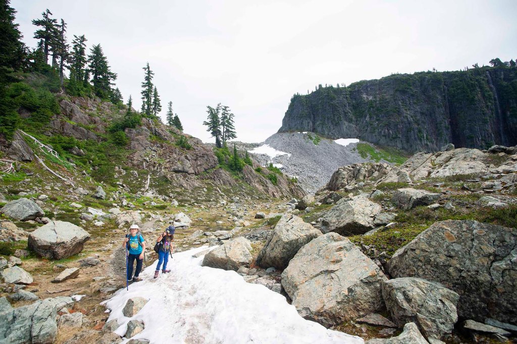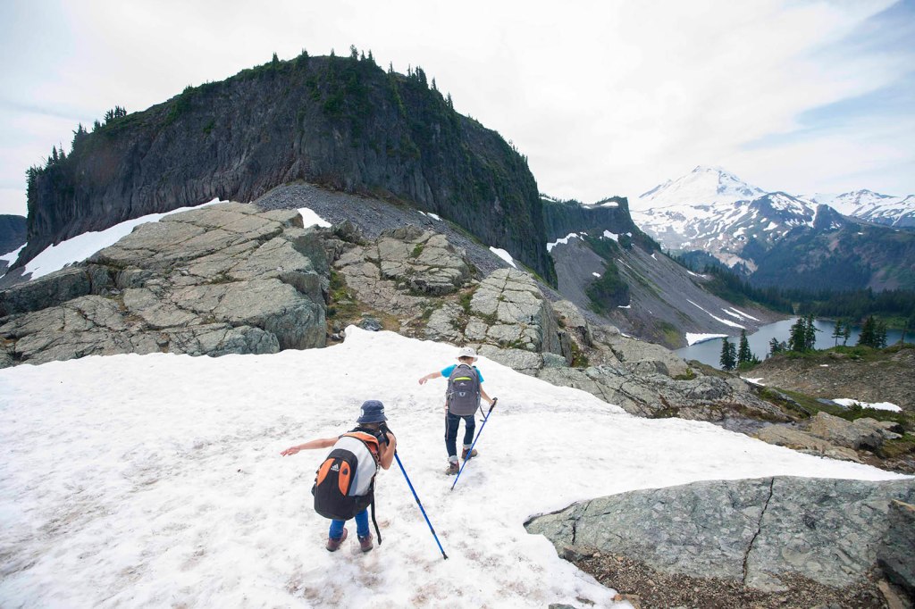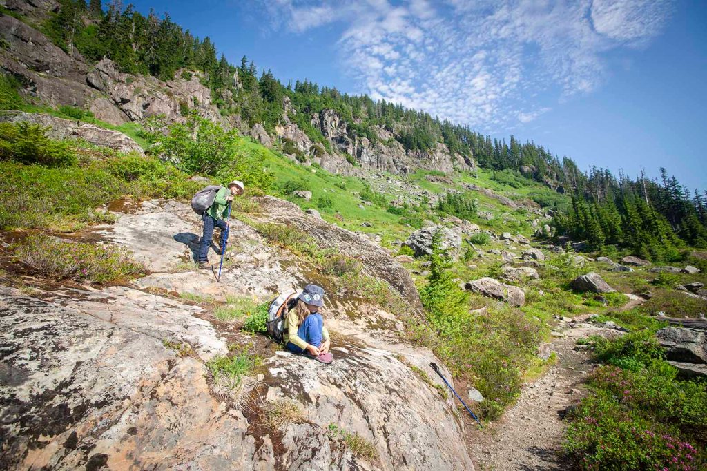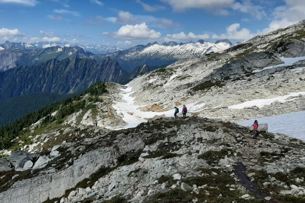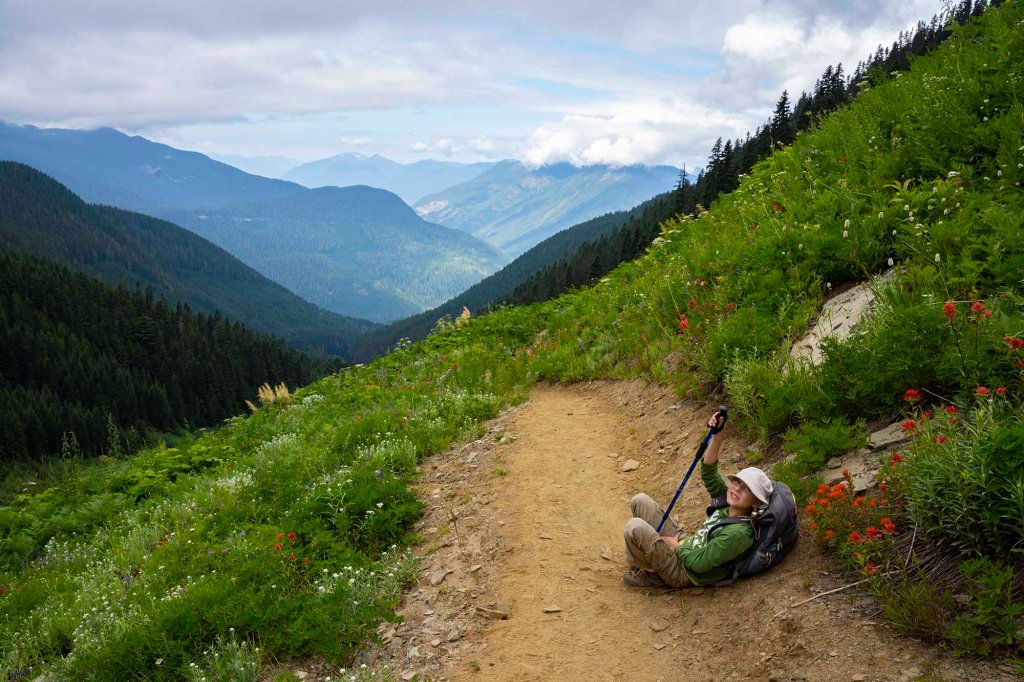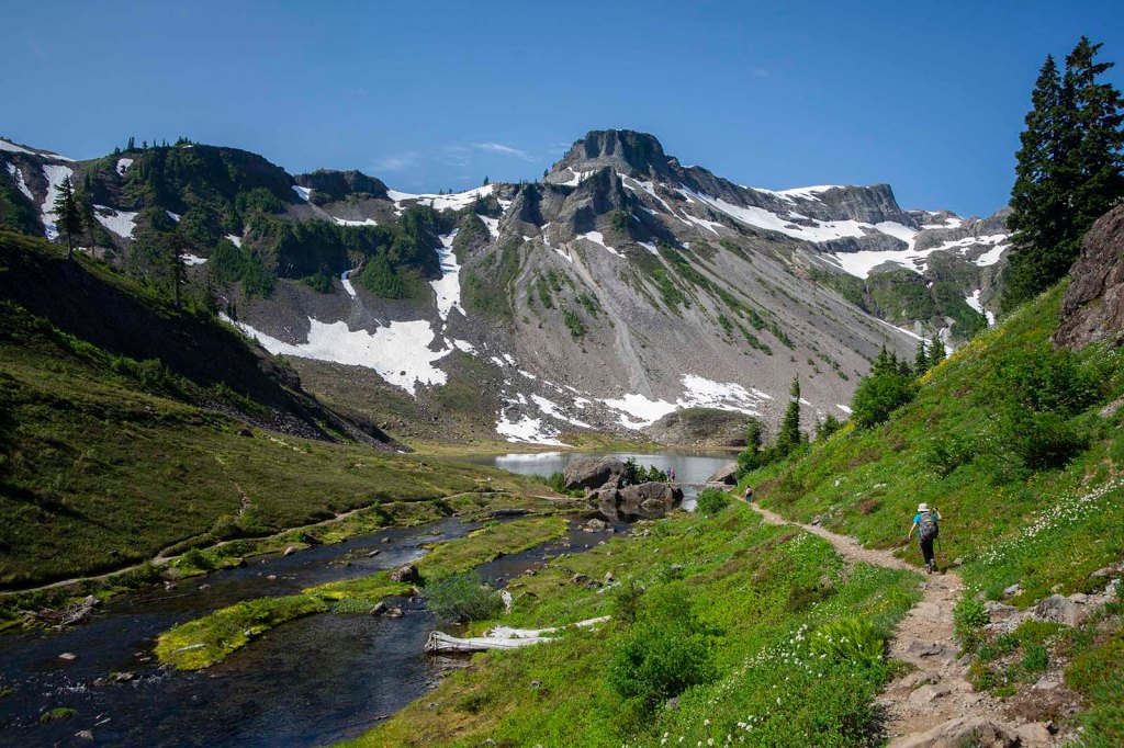 Wspinaczkę upiększają niesamowicie różnorodne kwitnące kwiaty i pachnące zioła takie jak: fireweed, valerian, penstemon, paintbrush, czy scottish bluebell. Widok z serpentyn mamy na doliny rzek Skagit and Sauk.