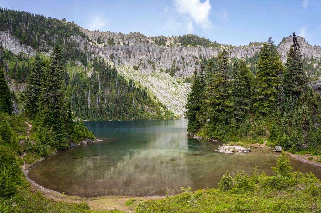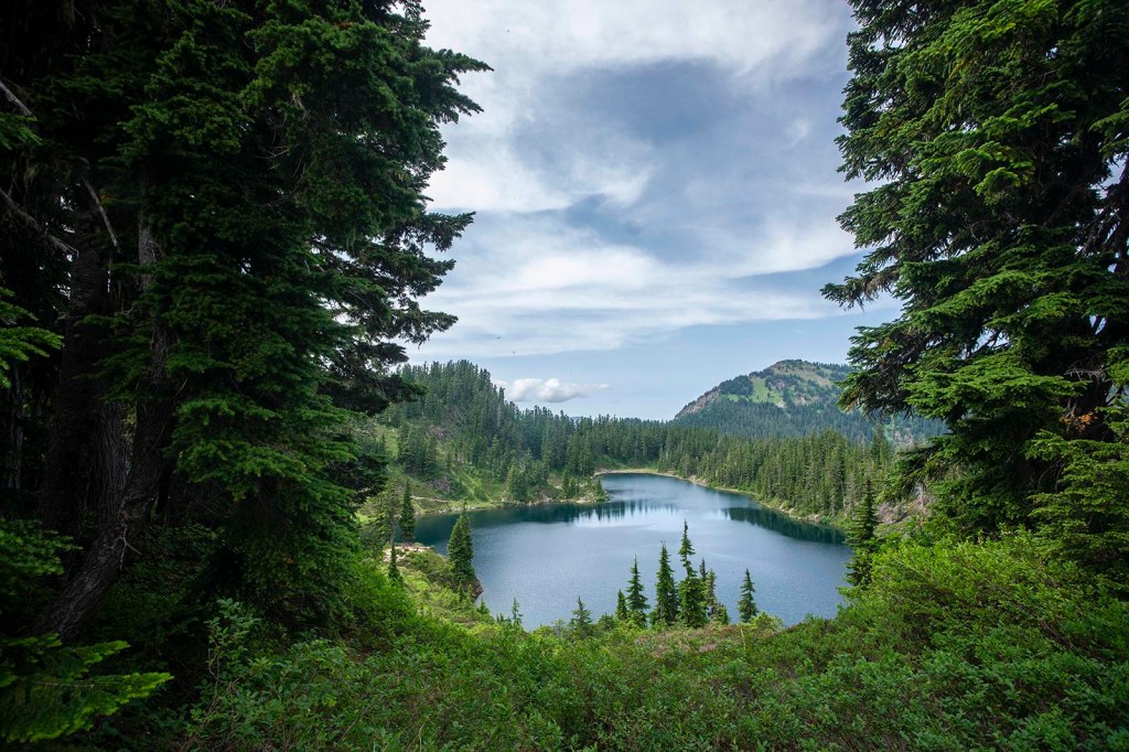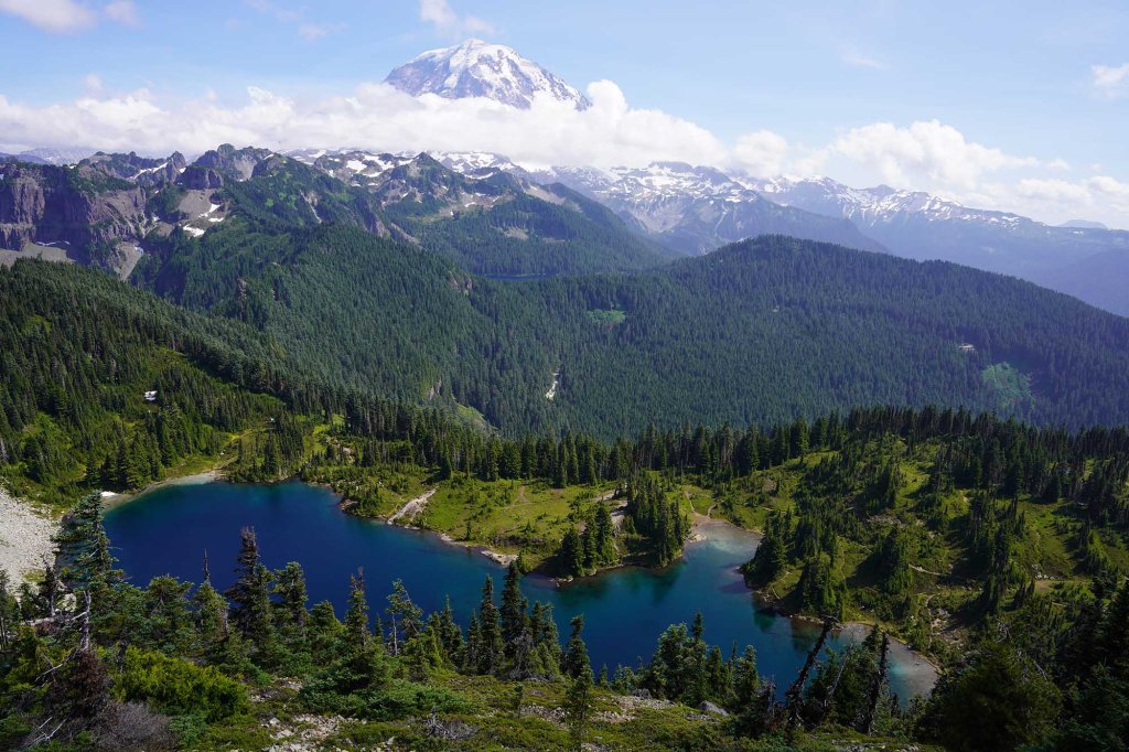 Po prawej stronie szlaku połyskuje w dolinie Sauk Lake.