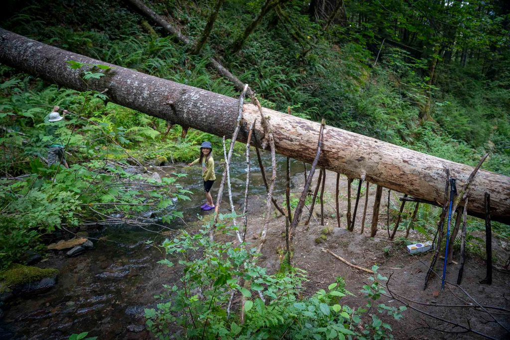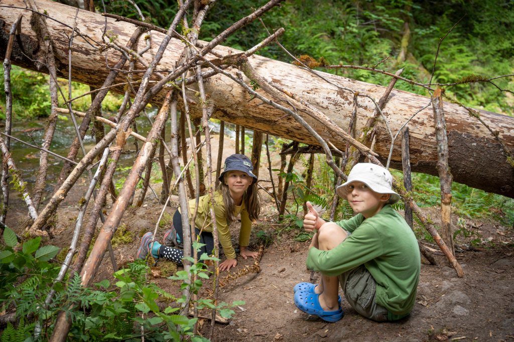 … i dochodzimy z powrotem do Covel Falls. Wracając musimy zatrzymać się jeszcze przy niedokończonym szałasie, do którego przez całą naszą drogę zbieraliśmy patyki.