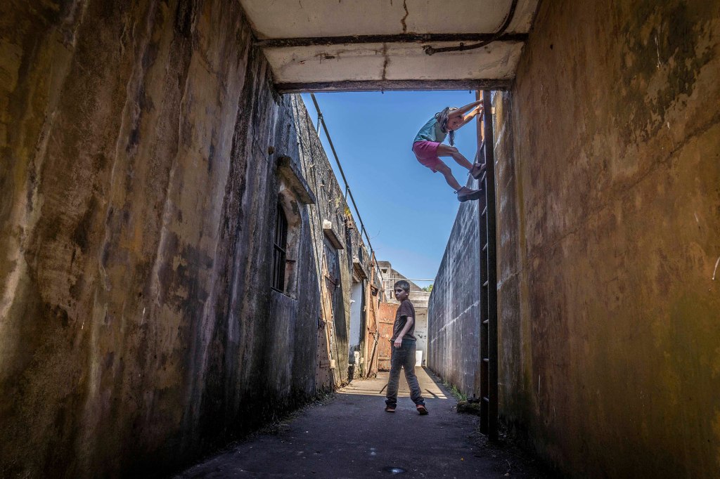 Dzieciaki zaczynają mozolną pracę nad przygotowywaniem szałasu,