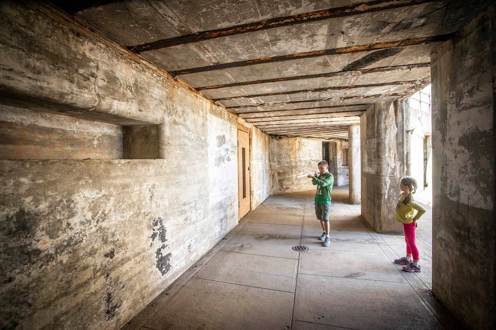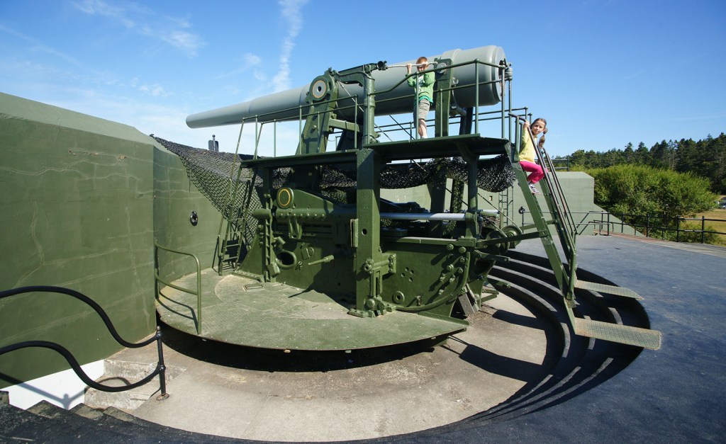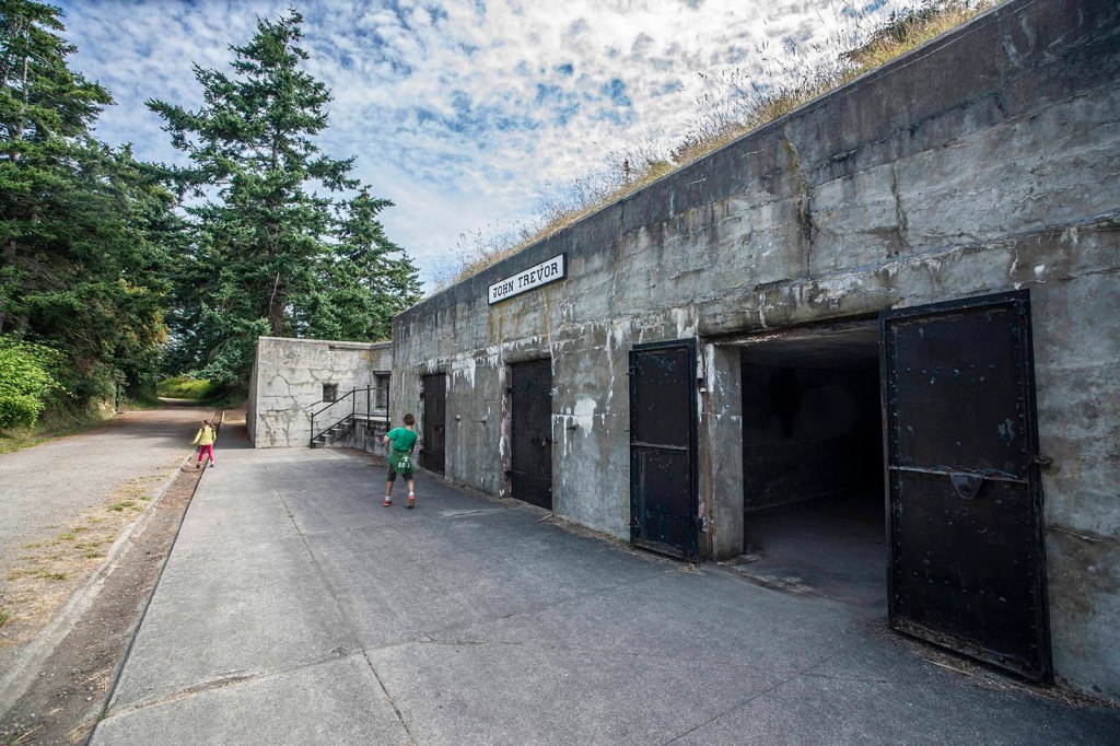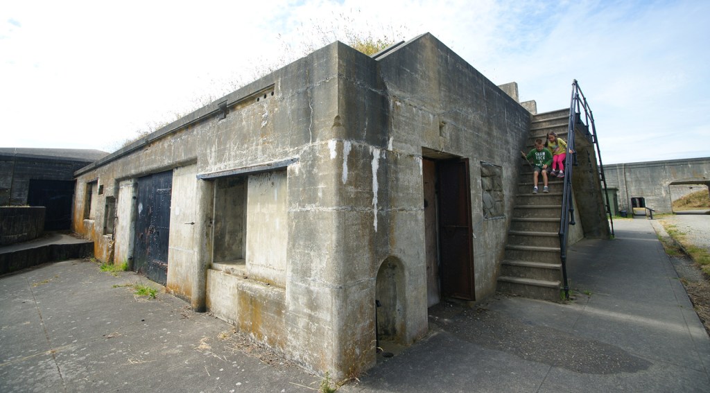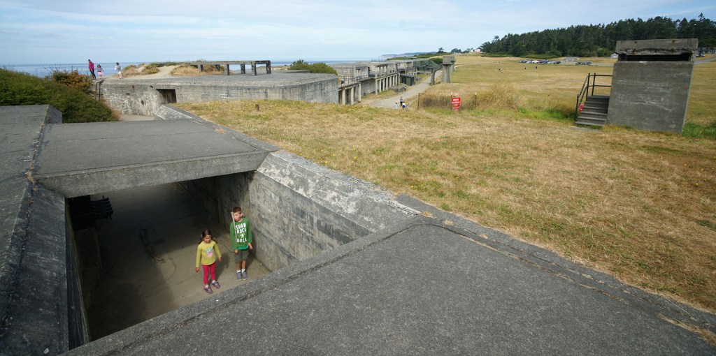 Miejsce, w którym się znajdujemy uznano za ekstremalnie strategiczne (nazywając je „triangle of fire„) i dlatego pod koniec ubiegłego wieku (1890 r.) ulokowano tu 3 forty obronne – Casey, Flagler i Warden (ten ostatni odwiedziliśmy rok temu – petarda!!!). Strategia militarna oparta była na teorii, że znajdujące się bardzo blisko siebie 3 forty w 3 różnych miejscach zatoki są w stanie udaremnić każdą próbę inwazji od strony Pacyfiku. Do militarnych spięć tu jednak nie doszło, a fort posłużył jedynie jako miejsce szkoleniowe dla żołnieży wysyłanych do Europy podczas obydwu wojen światowych. Po II wojnie fort opuszczono i zajęli się nim lokalni wandale, i dopiero w 1955 roku zarząd parków stanowych postanowił utworzyć tu park historyczny, który możemy dzisiaj z przyjemnością penetrować.