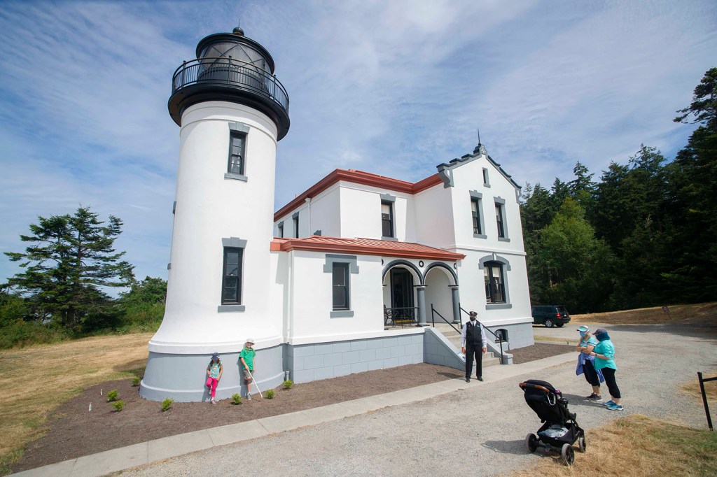 Po przeszukaniu wszystkich pomieszczeń fortu podjeżdżamy dosłownie ćwierć mili na północ do kolejnego parkingu, z którego wyruszamy na krótki spacer do latarni morskiej – Admiralty Head Lighthouse, będącej jedną z najmniejszych latarni w Washingtonie (mierzy zaledwie 9 metrów).