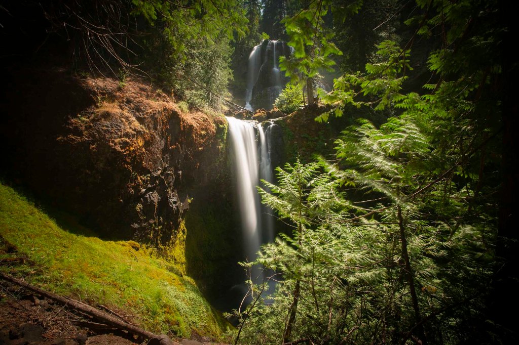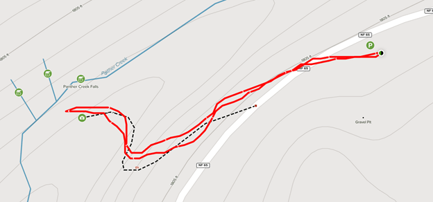Dzień zaczynamy od krótkiego szlaku prowadzącego do uroczych Panther Falls (długość 0,5 mili). Dojazd do wodospadu jest w miarę prosty. Zjeżdżamy z 14-tki odbijając na północ na Wind River Rd w okolicy Carson, następnie skręcamy w prawo w Panther Road (NF 65), którą dojeżdżamy do szerokiej szutrowej zatoczki po prawej stronie, gdzie parkujemy i przechodzimy na drugą stronę, skąd wychodzi ścieżka. Nie ma tu żadnych oznaczeń, ale trzeba po prostu wypatrywać szutrowego parkingu i na pewno trafi się do celu bez probelmu.