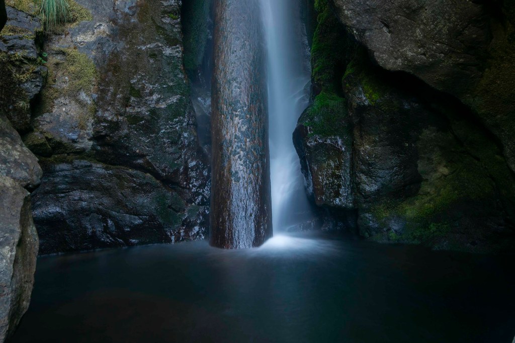 W samym jego centrum znajduje się pionowa kłoda wyszlifowana starannie przez płynącą z potężną siłą wodę.