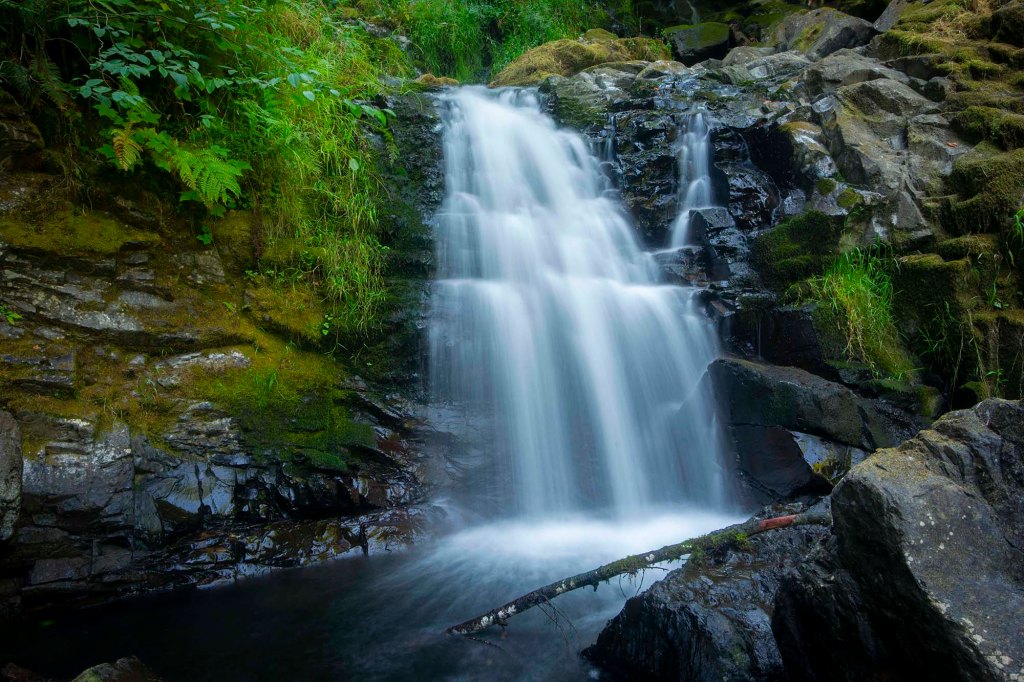 Żeby dostać się pod sam wodospad trzeba przejść przez rzekę – rwący strumień po 2 kłodach, które leżą tu od wielu lat (według opisów, które czytałam na internecie).