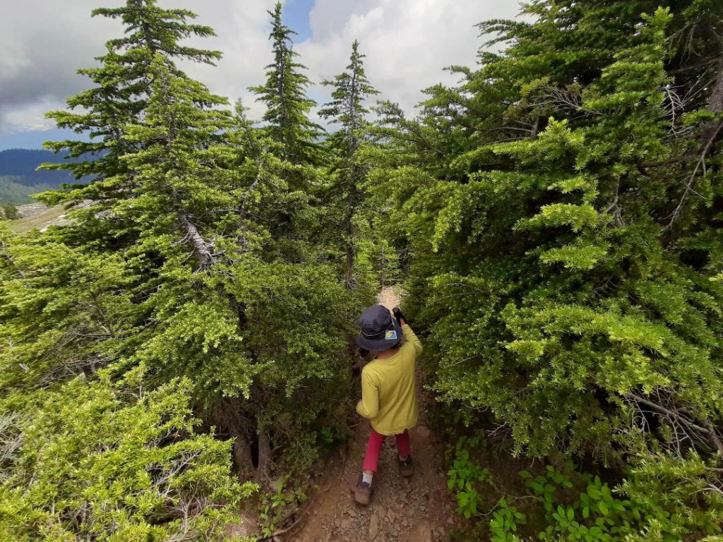 Na szczęście w miarę wznoszenia roślinność staje się coraz niższa i szlak zaczyna być bardziej przyjazny dzieciom.