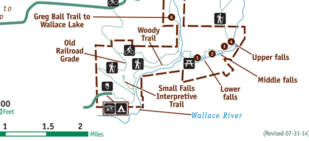 Ruszamy szlakiem, a w zasadzie labiryntem poplątanych ze sobą szlaków w stronę wodospadów. Od razu zaznaczam, że każdemu kto bez problemu pokona ten szlak i wróci w to samo miejsce stawiam piwo😊. Jest tu tyle rozgalezień, że wielokrotnie mieliśmy wrażenie, że zabłądziliśmy, a na sam koniec wyszliśmy z lasu 0.5 mili dalej niż zaczynaliśmy nasz spacer. Podejrzewam, ze w związku z bliskością bazy „harcerskiej”…. porobiono tu dużo przeplatających się ścieżek, żeby dzieciaki miały dostęp do szlaku z różnych miejsc swojej bazy.