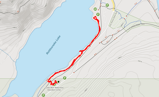 Parking jest tu bardzo ograniczony, a jego większa część pozagradzana betonowymi klocami. Pięciomilowy szlak, który stąd wychodzi – Rattlesnake Ledge Trail jest niestety zamknięty, więc po 40 minutowym spacerze wzdłuż jeziora nie pozostaje nam nic innego jak szybka ewakuacja do następnego punktu na naszej liście – Northwest Railway Museum w North Bend.