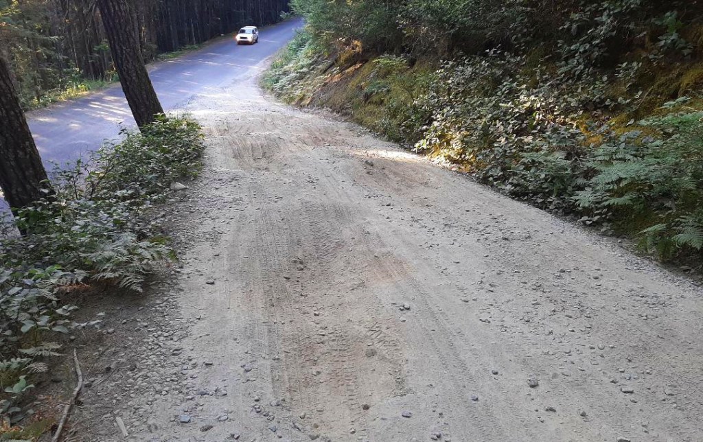 W końcu inni hikerzy wskazują nam prawidłowy kierunek szlaku. Zjeżdżamy na dupskach w kierunku wyłaniającej się miejscami drogi.