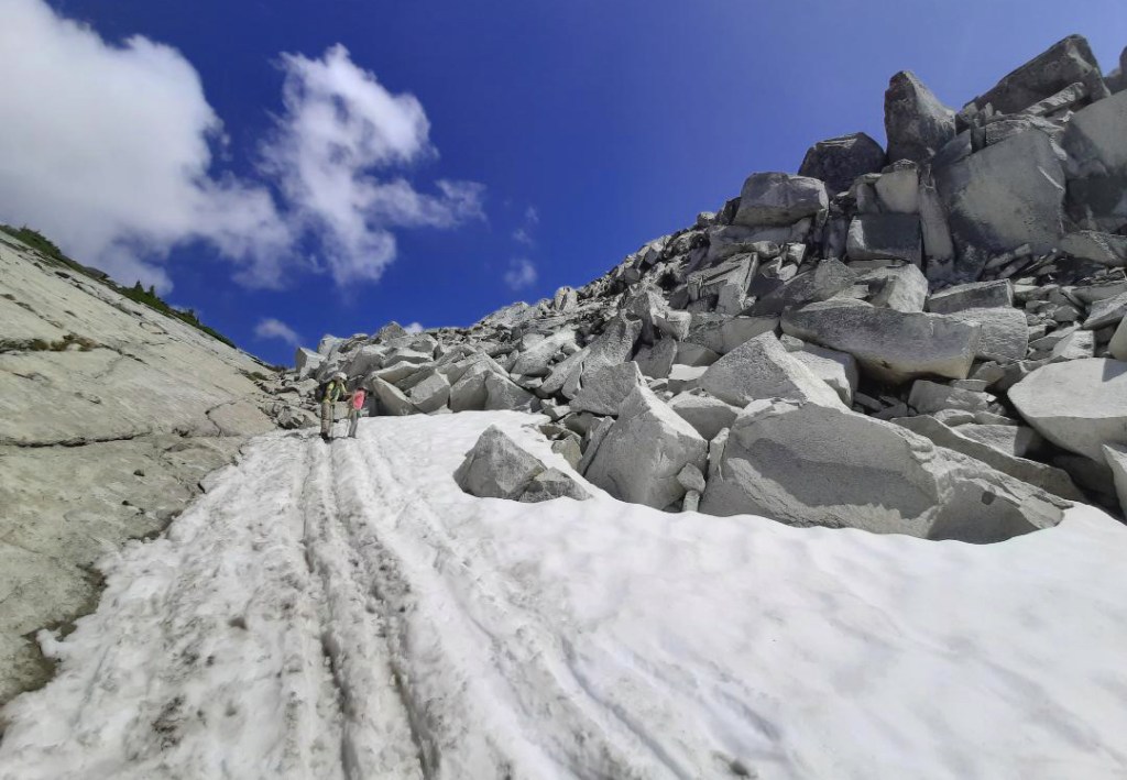 Chwilami szczególnie, kiedy wchodzimy do lasu napadają na nas komary. W partii wyższej szlaku napotykamy na śnieg przykrywający miejscami ścieżkę, ale raki nie są tu potrzebne.