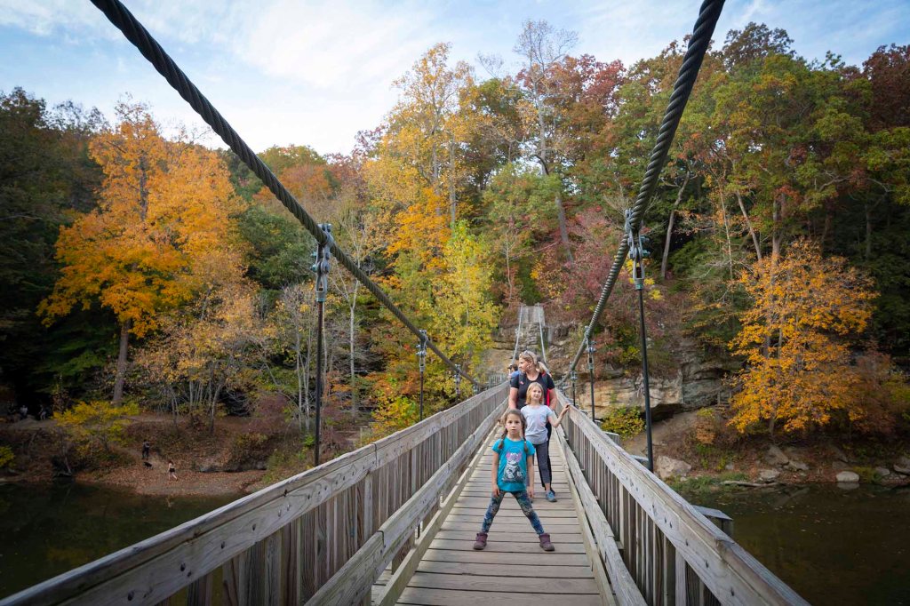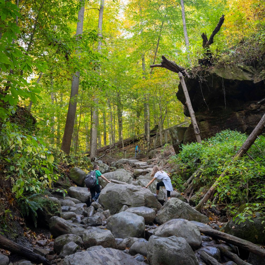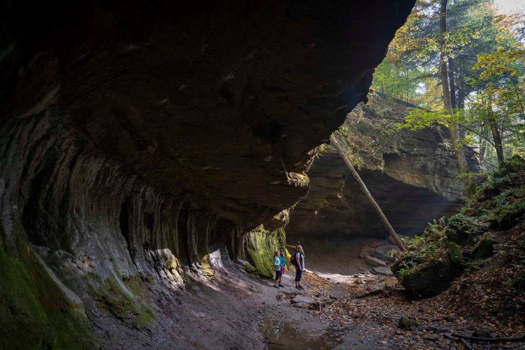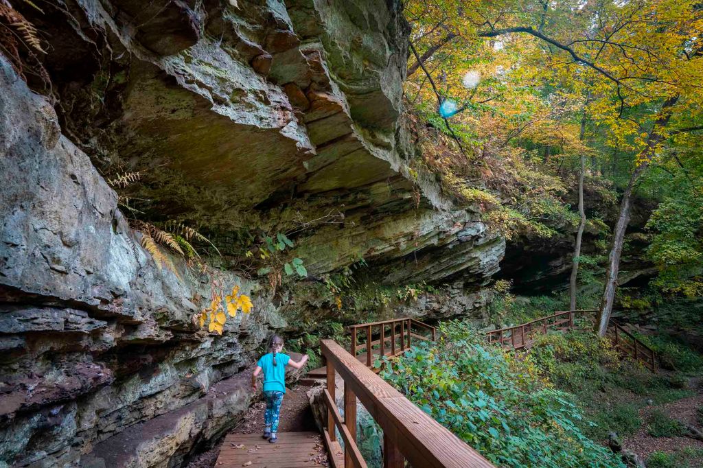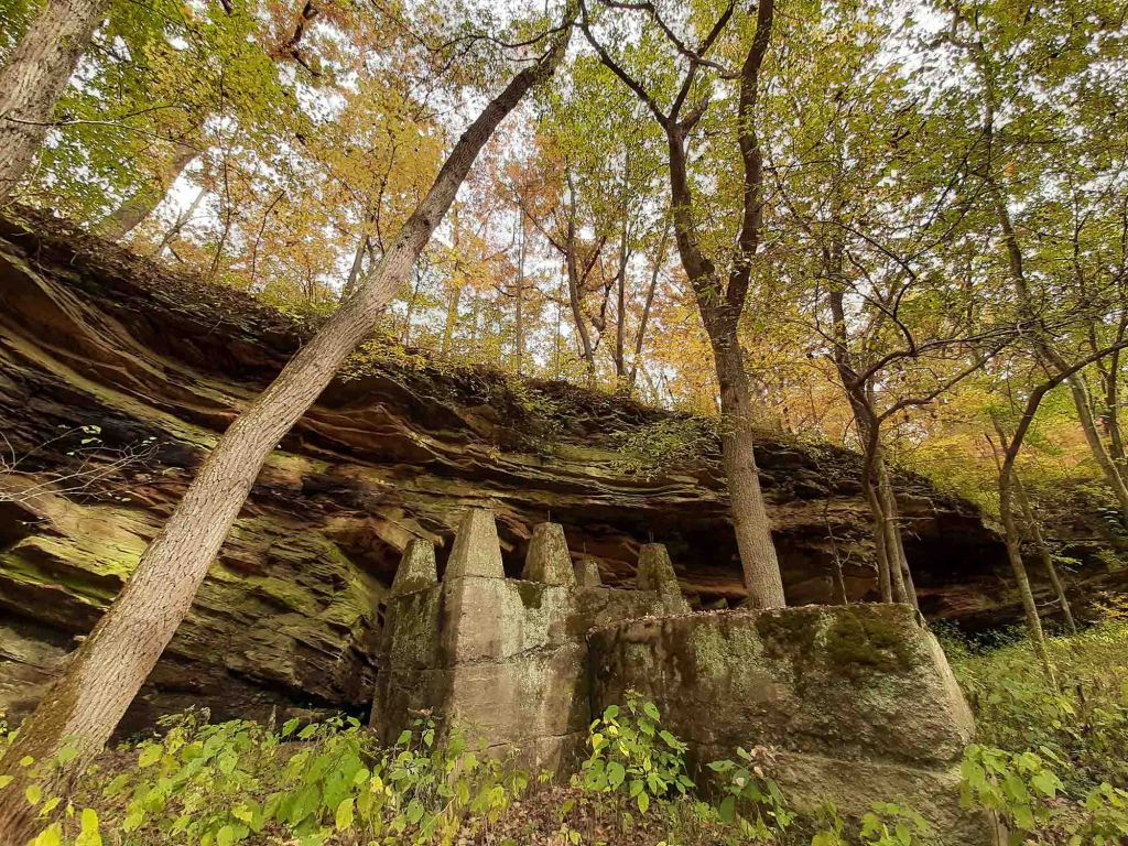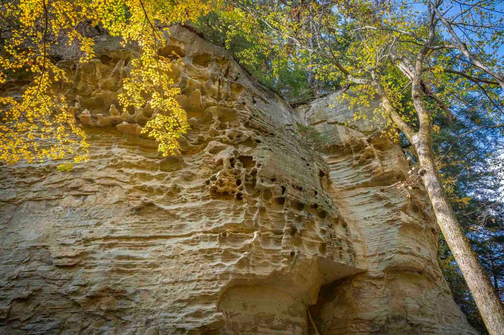 Najbardziej charakterystyczne i unikalne formy skalne tutaj to Devil’s backbone, Honeycomb rock, Woolen Mill i Mill Cut. Mamy przed sobą jeden z najwspanialszych przykładów głębokowciętych meandrów rzecznych we wschodniej części USA. Rzeki Clifty creek i Indian creek wyrzeźbiły tu 2 głębokie kaniony, których 30 metrowe ściany widzimy teraz po obu stronach. Honecomb to forma piaskowaca w kształcie plastra miodu i właśnie w tym miejscu spotykają się dwa strumienie wpadając dalej do Sugar creek.