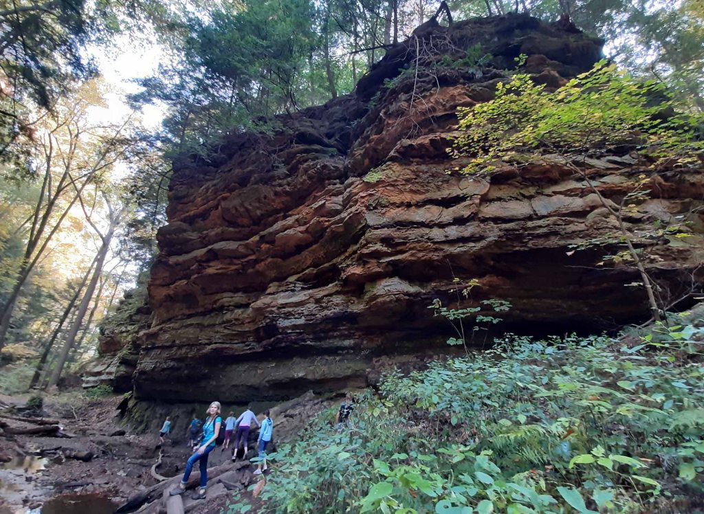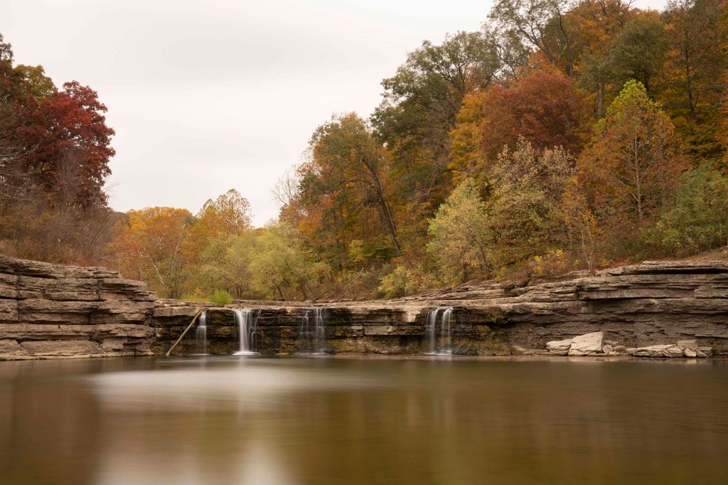 Punkt numer 2 dzisiejszej trasy to Williamsport Falls, jak się okazuje wyschnięte do ostatniej kropli….Wodospad znajduje się w środku miasteczka, ale schodząc do jego podnóża nie widać na szczęście otaczających go budynków, co daje uczucie delikatnej dzikości😊. Na wiosnę można podziwiać spadający z wysokości 27 metrów słup wody, który tworzy najwyższy wodospad w stanie Indiana. Do podstawy wodospadu można dostać się bardzo stromym skótem,