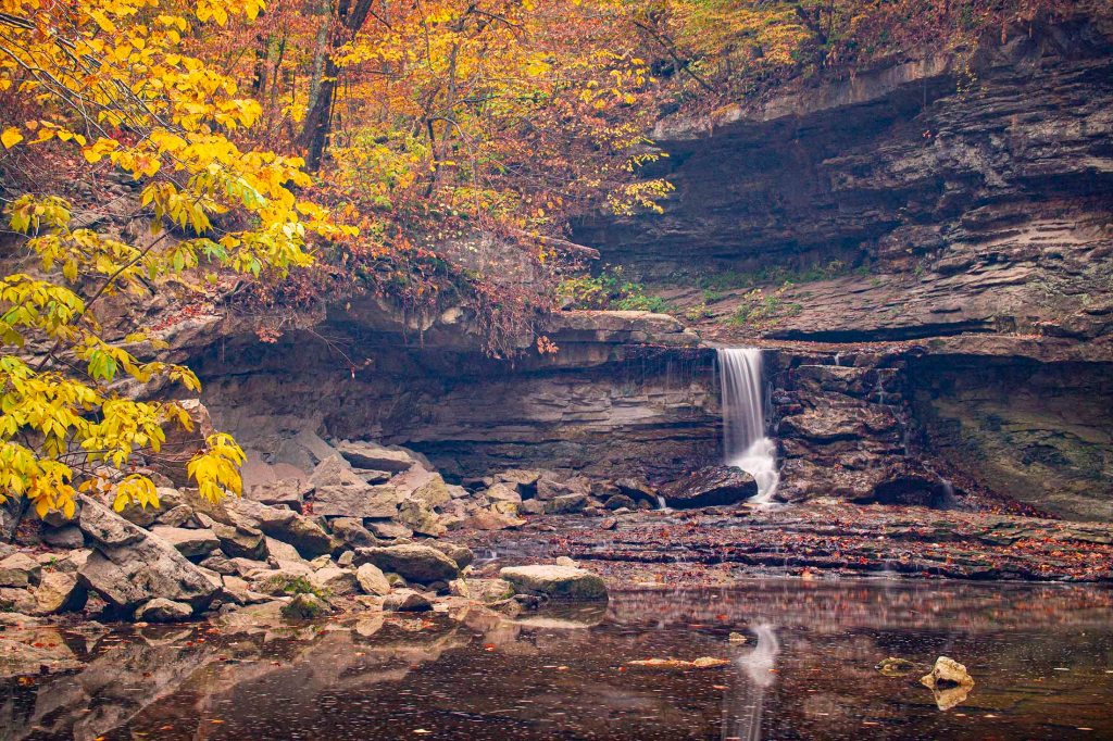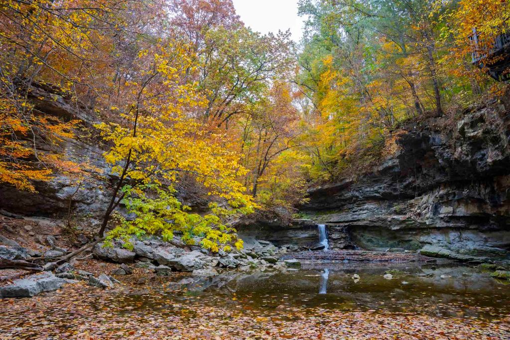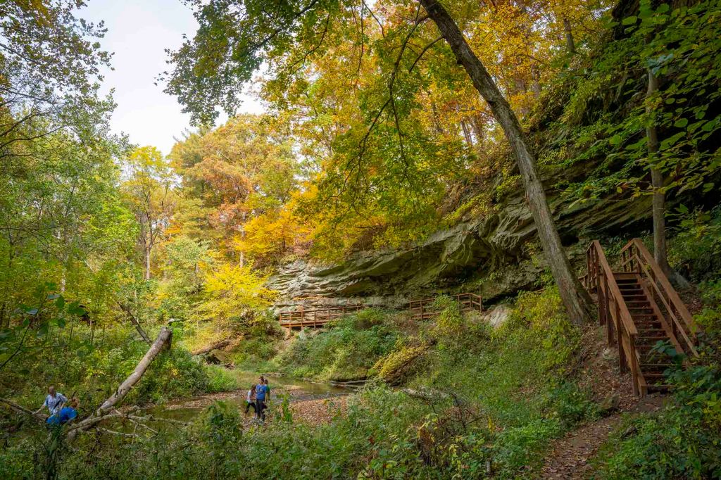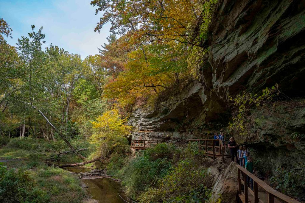 Dzień rozpoczynamy od odwiedzenia McCormick’s Creek State Park ($9/auto). W mieniących się kolorach jesieni wjeżdżamy szeroką aleją do parku.
