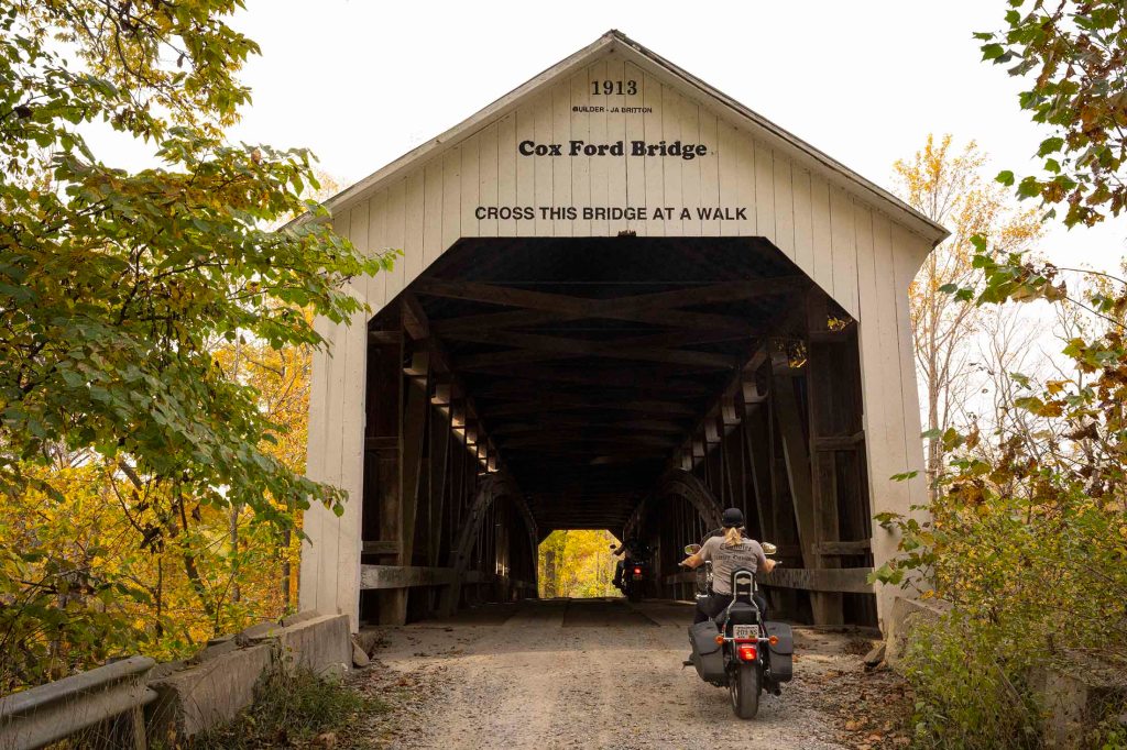 Jadąc dalej na południe (drogą #41) zaglądamy na chwilkę do jednego z najładniejszych okolicznych mostów – Cox Ford Cover Bridge,