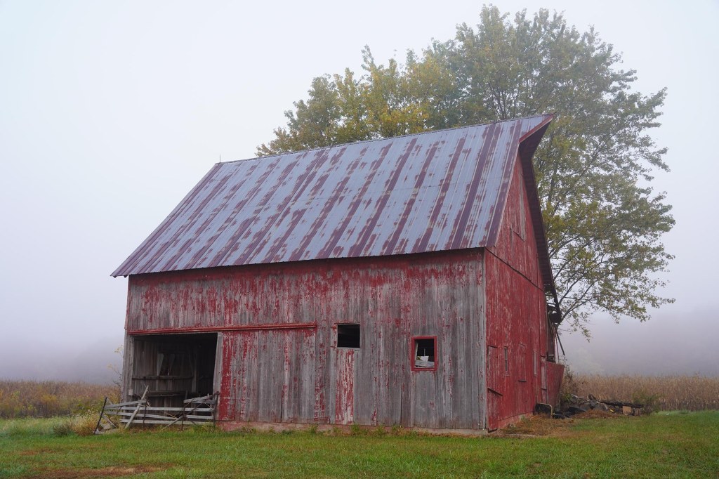 Indiana miło nas zaskoczyła swoimi małymi cudami natury, które mieliśmy w zasięgu ręki od tak dawna…. ale nigdy nikomu jakoś nie przyszło do głowy, żeby wziąść na poważnie wycieczkę do sąsiedniego stanu, słynącego podobnie zresztą jak Illinois z uprawy kukurydzy. A tu proszę – okryta jesiennymi kolorami mieniącymi się od soczystej czerwieni po pomarańcze, brązy i odcienie złota dosłownie rzuciła nas na kolana. Zwiedziliśmy kilka parków stanowych pełnych piaskowcowych wąwozów i kanionów, zatopionych w kolorach jesieni, odwiedziliśmy stare młyny i zadaszone mosty „covered bridges”, zabytkowe farmy, i ledwo „dyszące” (po ekstremalnie suchym w tym roku lecie) wodospady. Poznaliśmy też typowo wiejską stronę Indiany pełną starych rozpadających się stodół i pól kukurydzy, której wyschnięte lśniące w słońcu liście dodawały smaczku całemu otoczeniu. Zdecydowanie kolejna nasza jesień bedzie znowu należała do Indiany!