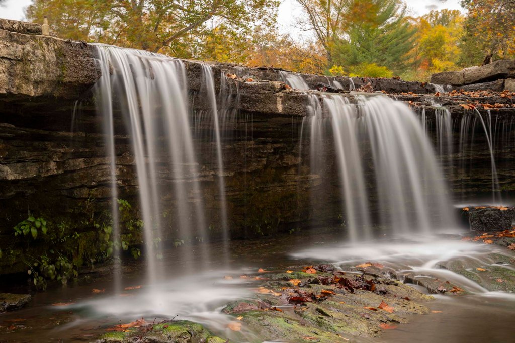 Stąd przedzieramy się po lesie i wychodzimy bezpośrednio na leśny amfiteatr. Wyjeżdżamy z parku i udajemy się do petardy dnia dzisiejszego – parku stanowego Cataract Falls. Znajdują się tu 2 wodospady – Lower o wysokości 6 metrów i 5 metrowy Upper będące największymi wodospadami Indiany – jeśli bierzemy pod uwagę ilość przepływającej wody. Zaczynamy od części – Upper i spacerujemy wzdłuż rzeki.