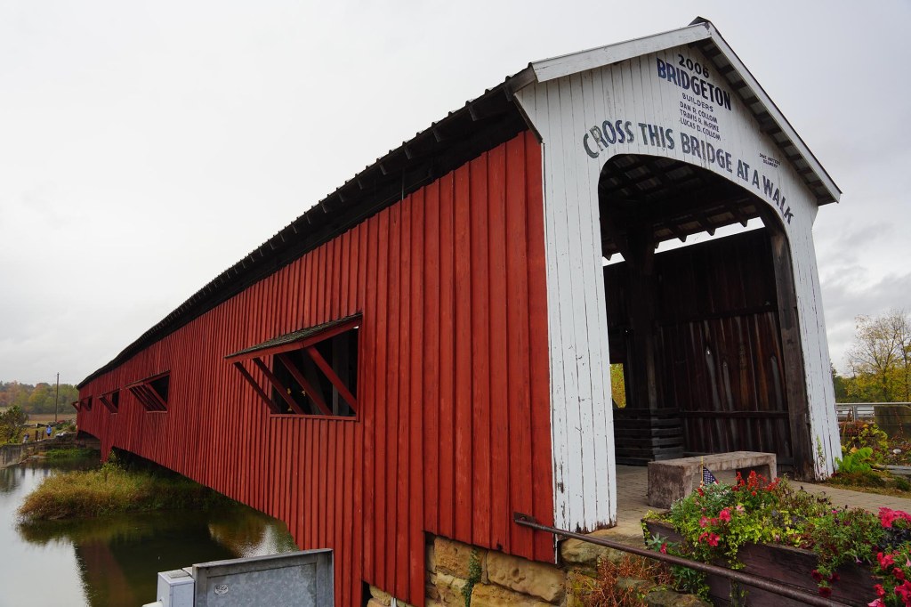 Jest to jeden z najsłynniejszych krytych mostów w Indianie. Jego długość to 80 metrów. W 2005 roku całkowicie spłonął, ale dzięki lokalnej społecznej inicjatywie został w ciągu roku odbudowany z zachowaniem wszystkich szczegółów i detali i teraz znowu jest prawdziwą perełką okolicy.
