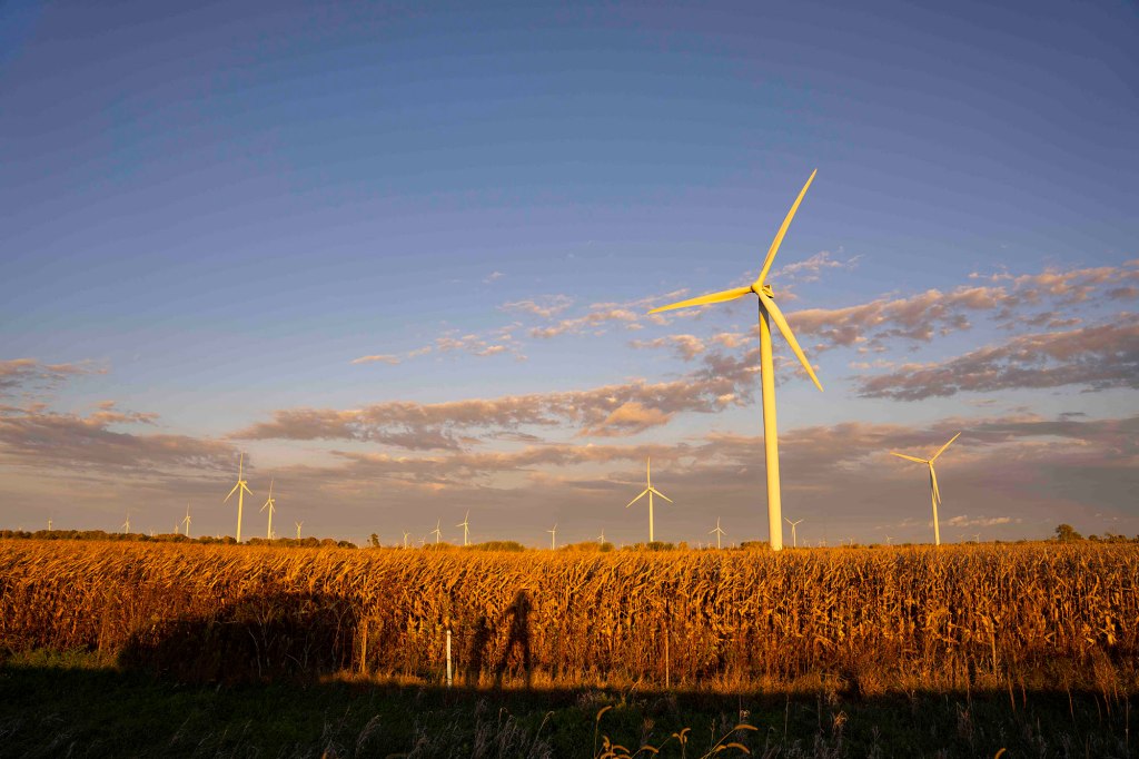 Takie wiatrowe turbiny instalowane są w wietrznych miejscach, tam gdzie notuje się dużą liczbę dni wietrzynych z ponadprzeciętną prędkością wiatru by mogły być opłacalne ekonomicznie. Aby warunki dotyczące wietrzności były spełnione, turbiny powinny być odpowiednio wysokie (powyżej 45 metrów). Farma przez którą przejeżdżamy w Benton County liczy sobie aż 315 wiatrowych turbin i jest jedną z największych tego typu w Indianie. Całościowa liczba wiatraków to 1,237 sztuk, co daje około 6% produkowanej energii w stanie wykorzystywanej głównie przez gospodarstwa domowe. I tym ekologicznym akcentem kończymy naszą miniwycieczkę do pobliskiego stanu wjeżdżając do wiecznie zakorkowanego Chicago.….