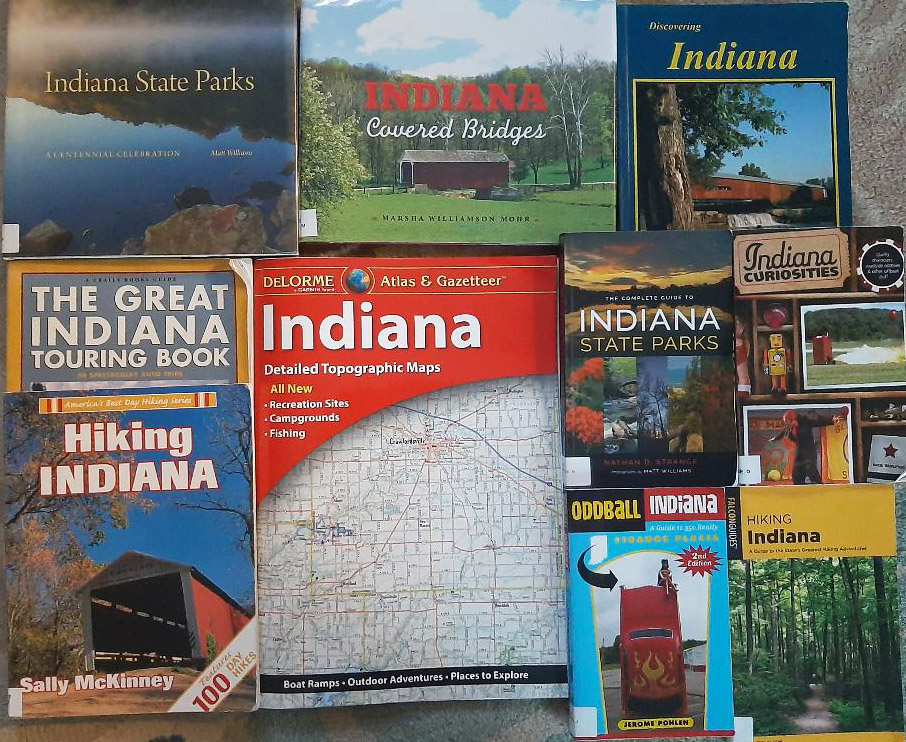PRZEWODNIKI: Atlas topograficzny Indiana (DeLorme), Hiking Indiana (falcon guides) Phil Bloom, Indiana State parks Nathan D. Strange.