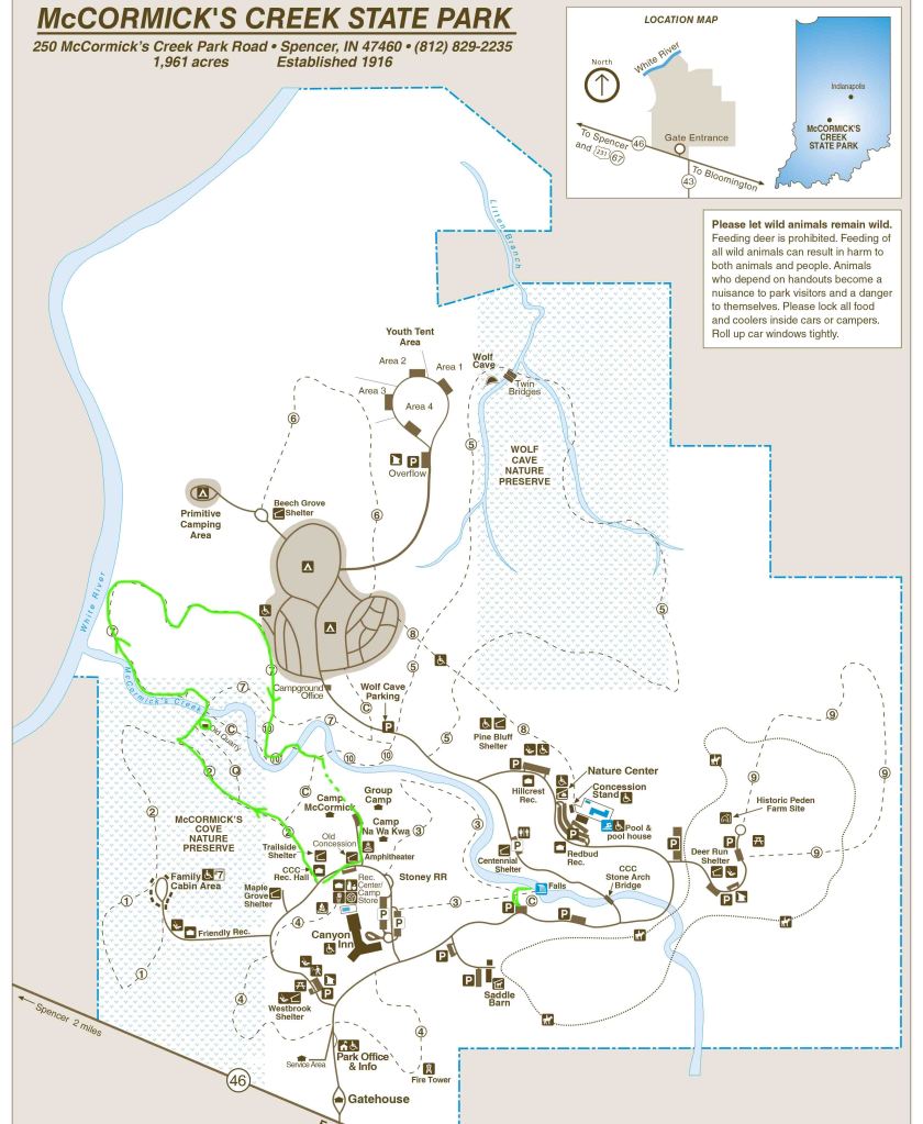 STATE PARKS PASS: Jednorazowy bilet wstępu kosztuje $9 (możemy w tym dniu odwiedzić dowolną liczbę parków stanowych w Indianie). Całoroczny pass dla nierezydentów stanu $70 (ważny od momentu zakupu do końca roku kalendarzowego).