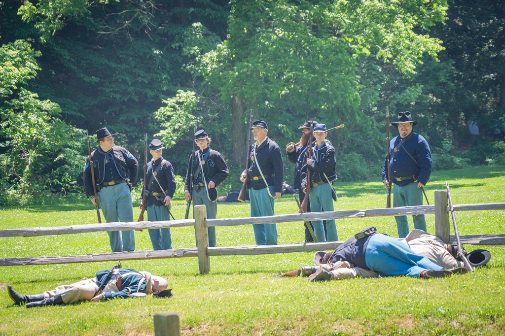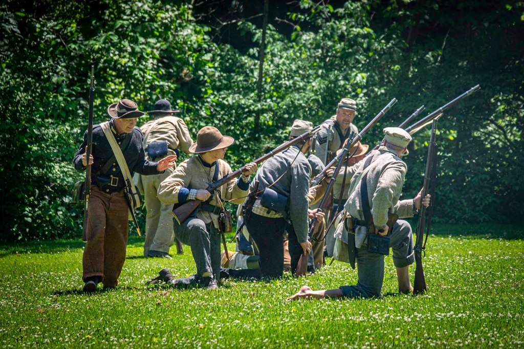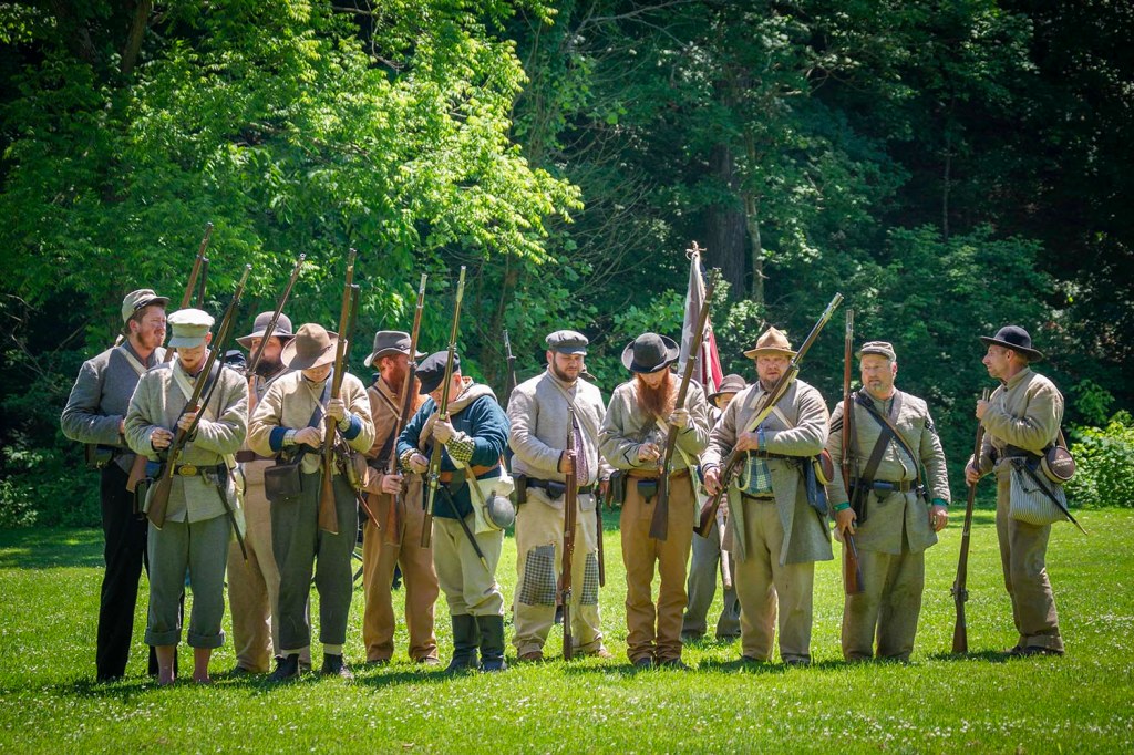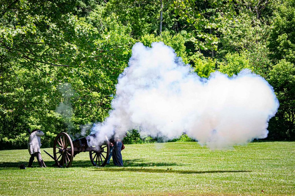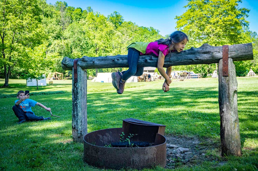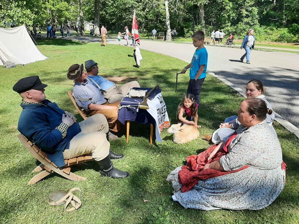 Wtedy dodatkowo na terenie skansenu rozstawiane są dziesiątki namiotów polowych i powstaje baza wojskowa, gdzie dodatkowo można wypatrzeć różne antyczne gatunki broni i dosyć sporą liczbę ich fascynatów. Oryginalna wioska powstała w 1814 roku w miejscu, gdzie pionierscy „przedsiębiorcy” wykorzystali stałe źródło wody, które nigdy nie zamarzało, zużywając je do zasilania kilku młynów, tartaku i gorzelni.