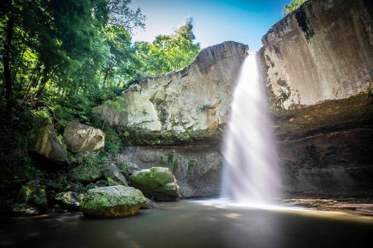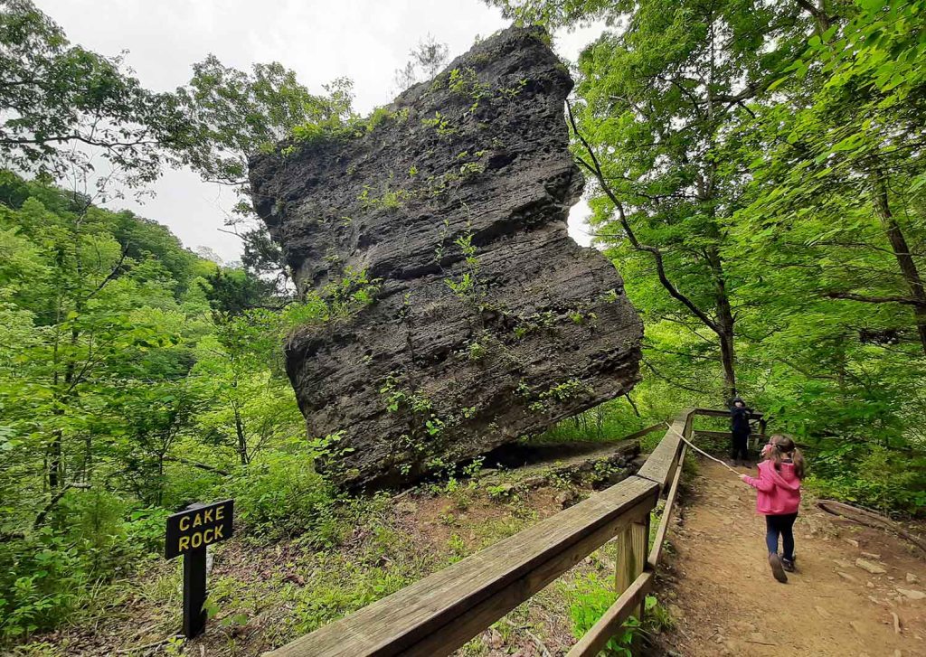Po drewnianych pomostach i schodach wędrujemy krótkim szlakiem zahaczając o Cake rock. Spacerujemy jeszcze Tunnel falls trail (szlak nr 5), ale i tu również wodospad nie ma się czym pochwalić.
