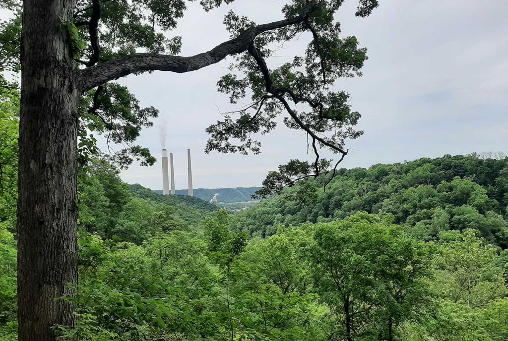 Ostatnia krótka ścieżka prowadzi nas do punktu widokowego na Hoffman Falls – które są totalnie wyschnięte i podziwiać możemy jedynie półkę skalną w otoczeniu zielonych drzew i kicające nieopodal króliki….no i kominy pobliskiej elektrowni……