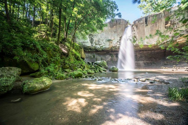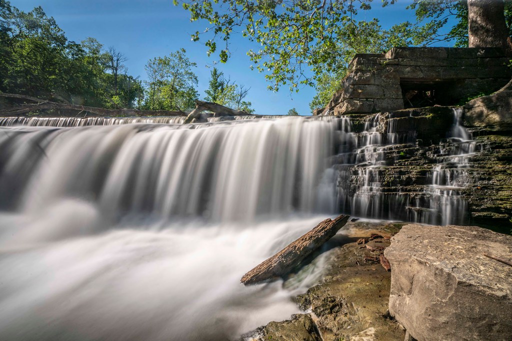 Znajdują się tu 2 wodospady – Lower o wysokości 6 metrów i 5 metrowy Upper będące największymi wodospadami Indiany – jeśli bierzemy pod uwagę ilość przepływającej wody. Poranek jest zdecydowaniem najgorszym czasem, żeby odwiedzić to miejsce. Padające centralnie na nas promienie słoneczne uniemożliwiają zrobienie praktycznie jakiegokolwiek zdjęcia wodospadów.