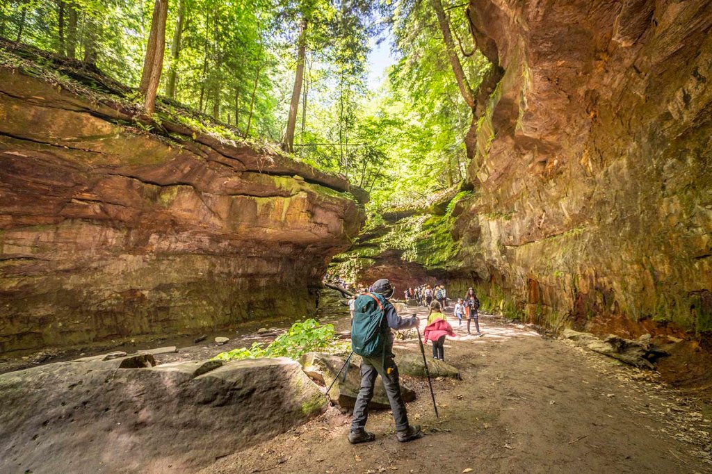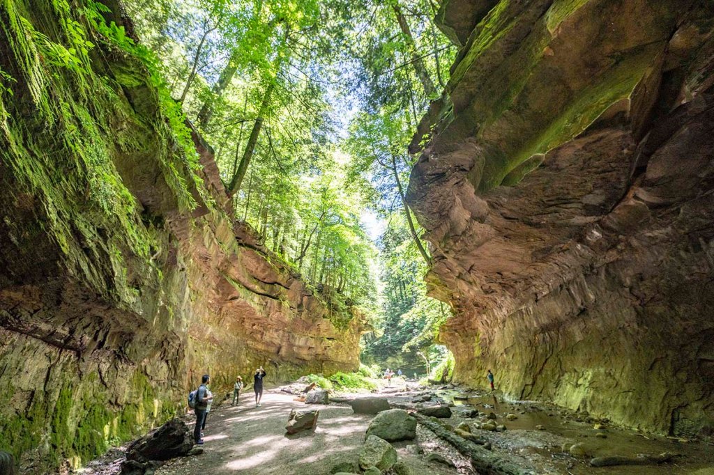 Cliffy Falls State Park (wjazd $9/auto) poza widokowymi wodospadami, klifami i jaskiniami oferuje również liczne skamieniałości koralowców, kałamarnic, ramienionogów i innych pradawnych zwierząt morskich. Zbieranie tych skamielin w jakimkolwiek parku stanowym jest oczywiście zabronione, ale pobliskie doliny rzeczne oferują niezliczone możliwości dla fanów geologii. Zaczynamy od szlaku Cliffty falls i Little Cliffty falls.