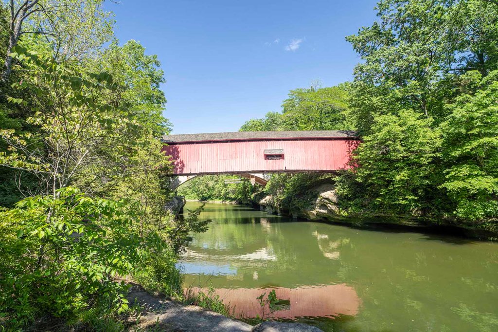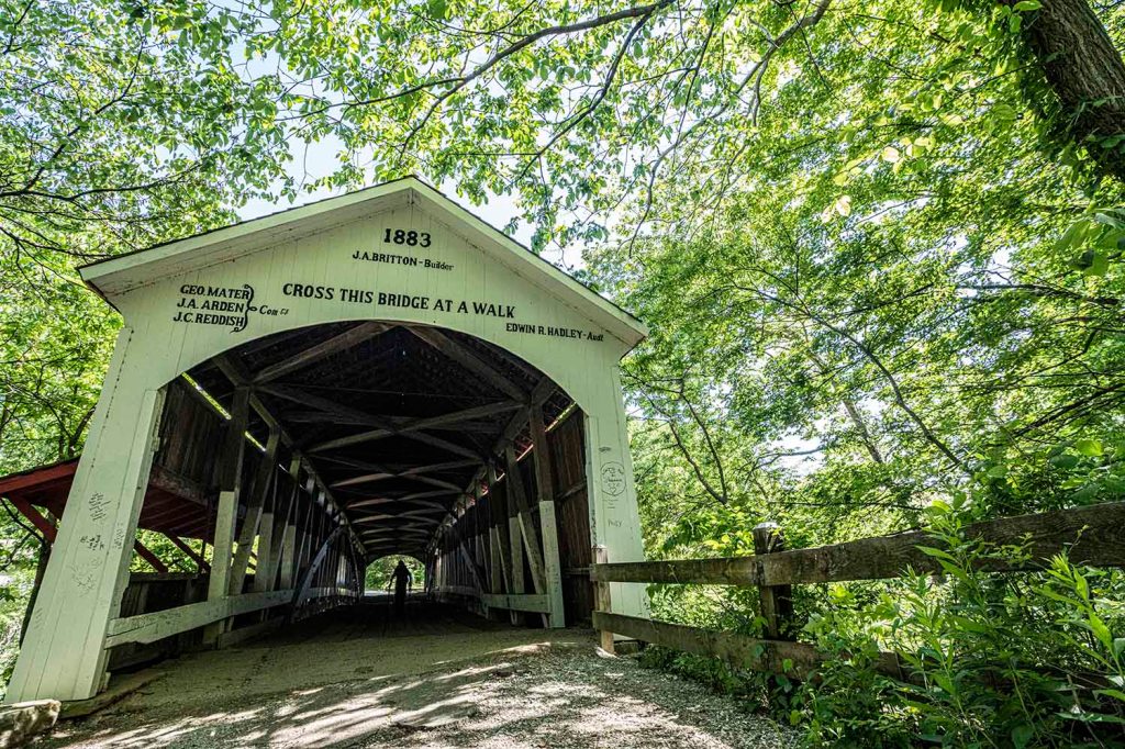 Jest to jeden z najsłynniejszych krytych mostów w Indianie. Jego długość to 80 metrów. W 2005 roku całkowicie spłonął, ale dzięki lokalnej społecznej inicjatywie został w ciągu roku odbudowany z zachowaniem wszystkich szczegółów i detali i teraz znowu jest prawdziwą perełką okolicy. Pod mostem na rzece znajduje się tama tworząc tzw “dam waterfalls”.
