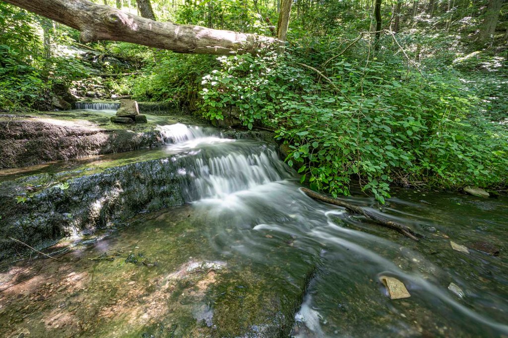wzdłuż strumyku z małym wodospadem…..