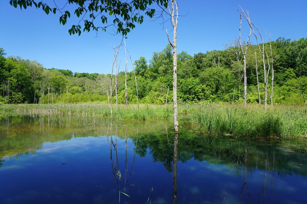 Kolejny szlak – Leonard Spring Nature Park (4600 S Whooping Crane Ln, Bloomington) oferuje przyjemny spacer po lesie…..