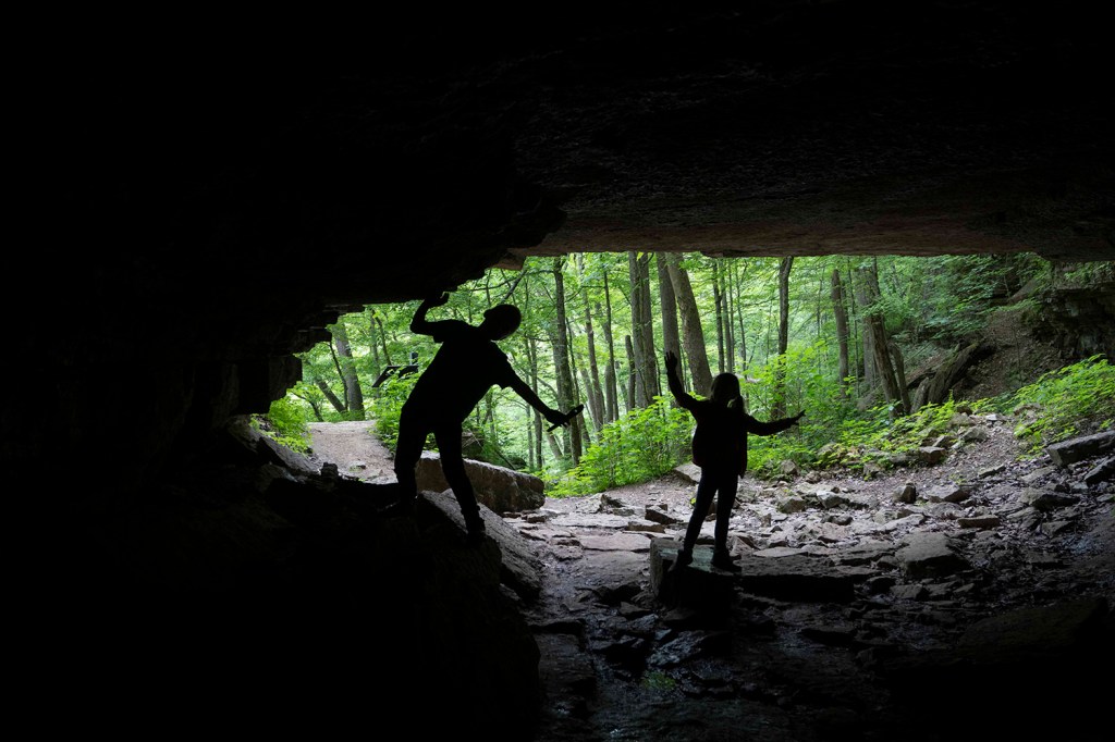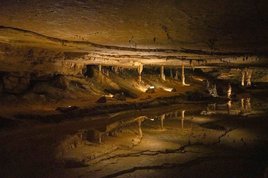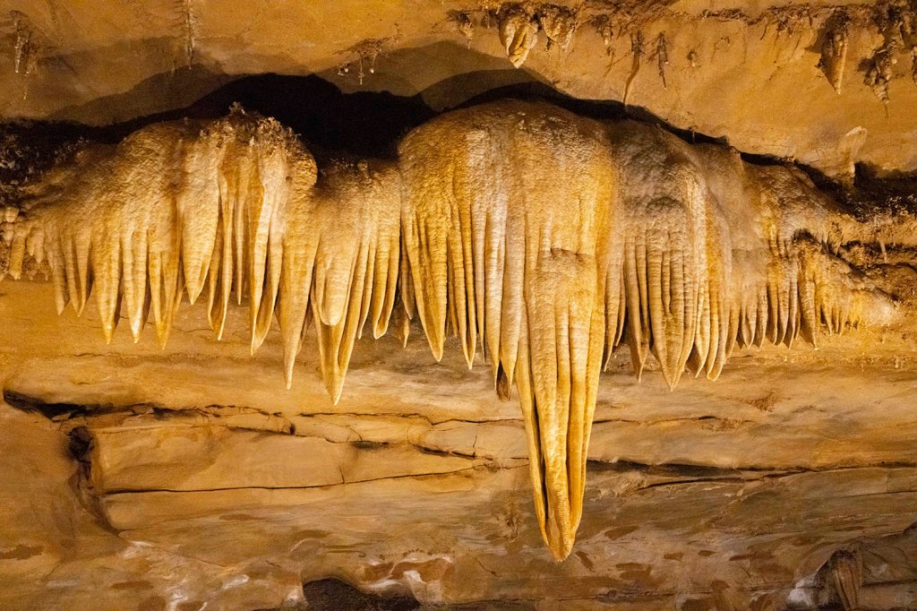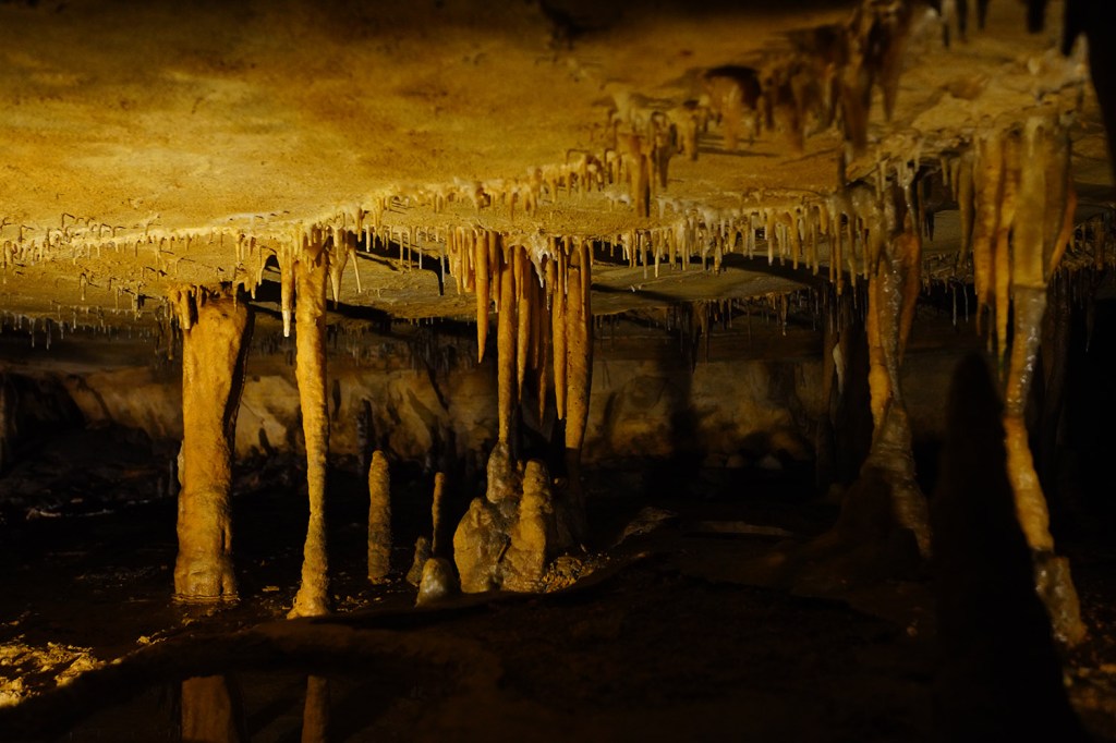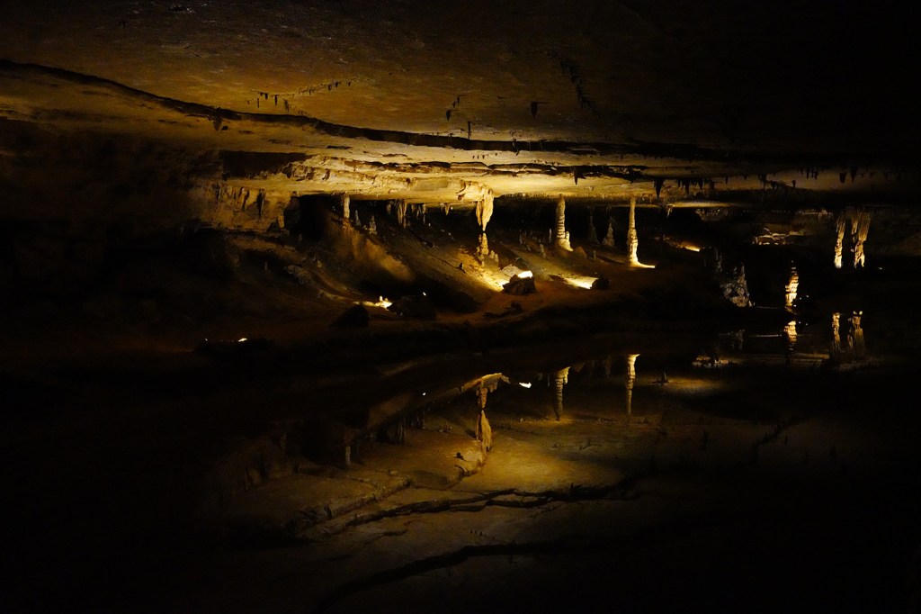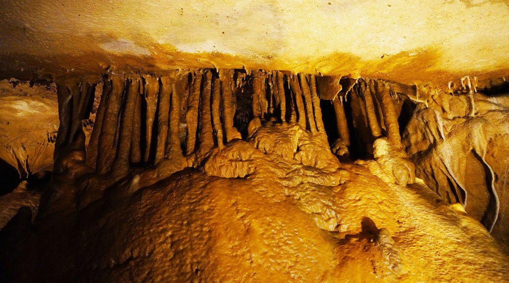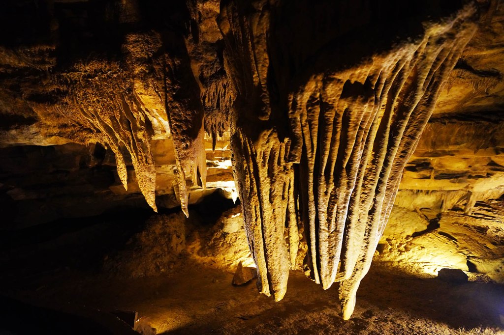 Jest za to jaskinia – tunel (Broughg’s tunnel), w której zimę spędzają hibernujące nietoperze i która w tym czasie jest też zamknięta dla zwiedzających (listopad 1-kwiecień 30). Pierwotnie tunel był skonstruowany na potrzeby kolei ….ale zaraz po jego przygotowaniu w roku 1850 pomysł poprowadzenia tędy lini kolejowej został zupełnie zaniechany. Od razu wprowadziły się tu nietoperze, które dzięki dużej cyrkulacji powietrza w tunelu mają też mniejsze szanse zarazić się tzw. white nose syndrome (WNS), czyli chorobą grzybiczną zabijającą tysiące nietoperzy rocznie. Wbrew potocznym doniesieniom o roznoszeniu przez nie różnych chorób ssaki te są niesamowicie pożyteczne zjadając rocznie tony szkodników m.in niszczących uprawy rolne czy też nienawidzonych przez nas komarów. Naukowcy obliczyli, że brak nietoperzy w naszym ekosystemie kosztowało by gospodarkę Stanów Zjednoczonych około 3,7 miliarda dolarów rocznie w postaci strat w uprawach rolnych.