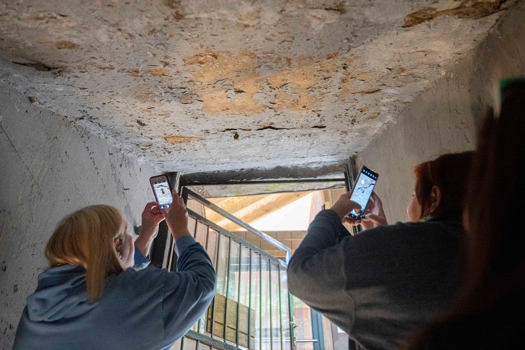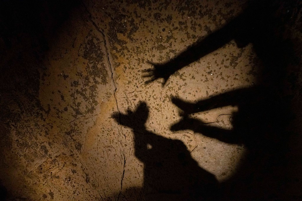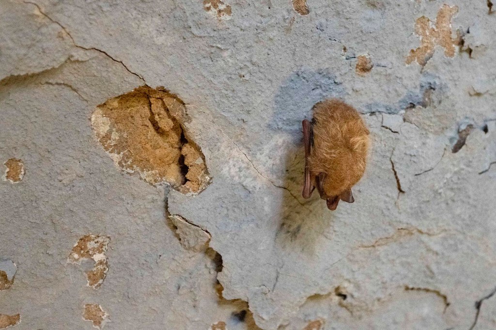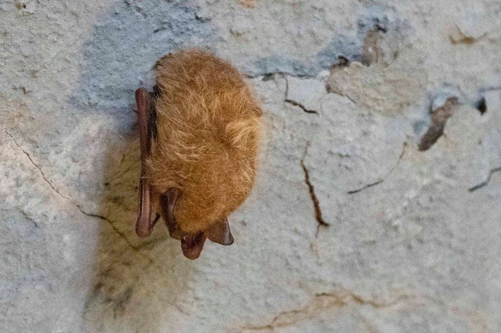Hibernujący nietoperz przy wyjsciu z jaskini stał się dodatkową atrakcją parku.