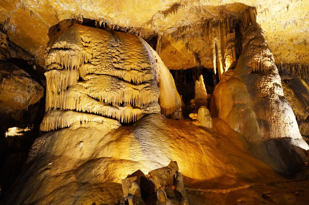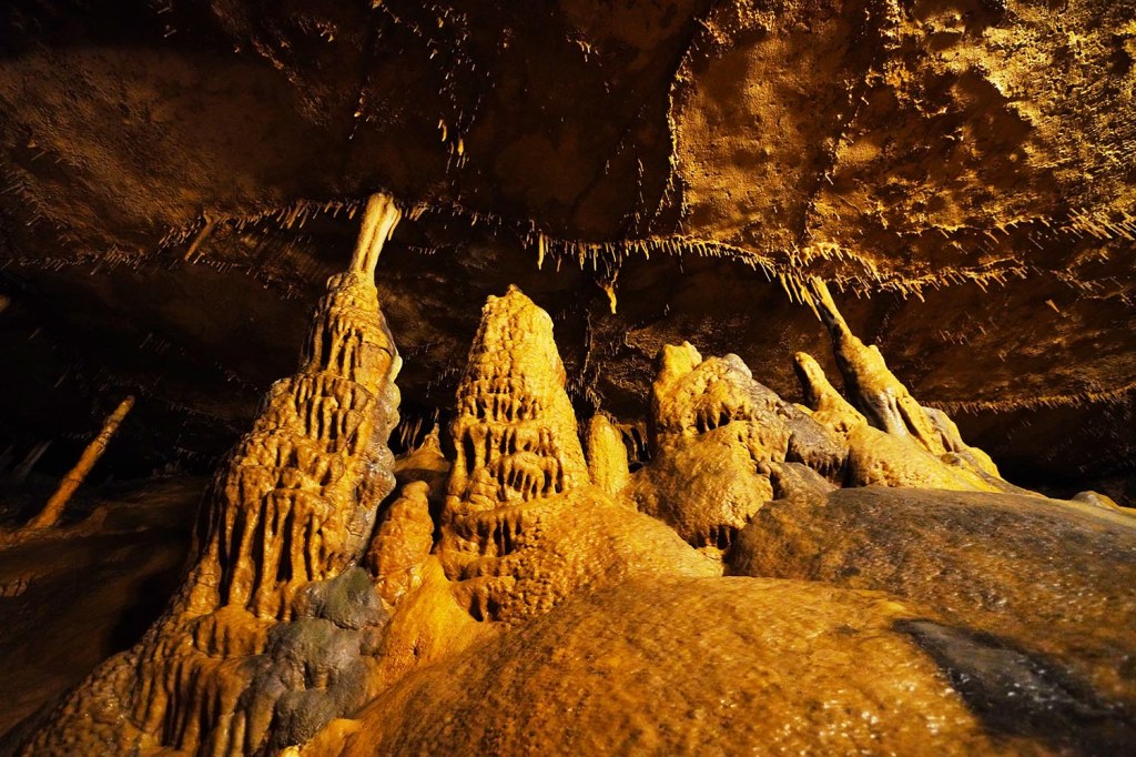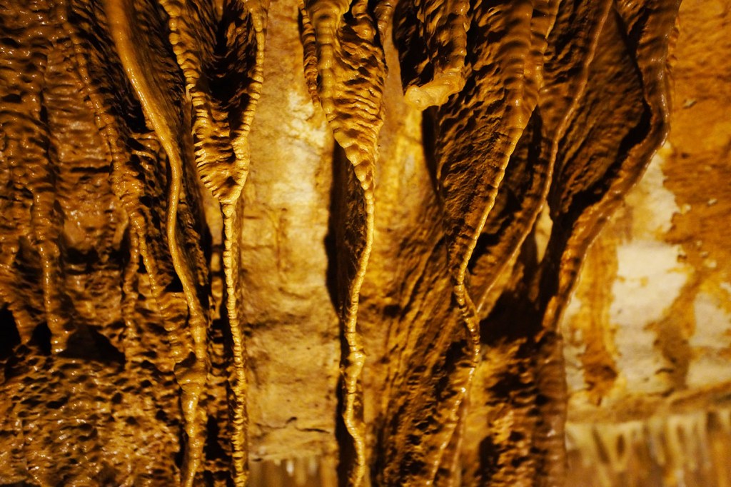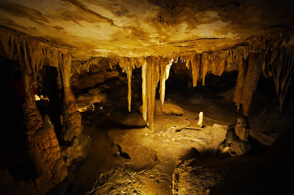 Jaskinie Marengo (Marengo Caves National Natural Landmark – 400 East State Road 64, Marengo, czynne 9am-6pm), które odwiedzamy dzisiaj uważane są jako największa naturalna atrakcja Indiany. Czynne są przez cały rok (dzięki stałej temperaturze 11 C), a zwiedzać je możemy jedynie podczas wycieczek z przewodnikiem. Najlepszą opcją dla nas okazał się zestaw „COMBO” 😊. W promocyjnej cenie ($29 dorosły/$17 dziecko) można wykupić zestaw 2 wycieczek: Crystal Palace, która obejmuje 1/3 mili i trwa około 40 minut, i godzinną wycieczkę Dripstone Trail (1 mila). Obie wycieczki obejmują różne sekcje jaskini i nie są do siebie w żadnej mierze podobne (Dripstone trail zaczyna się w miejscu gdzie Crystal Palace trail się kończy). Opcją dla bardziej odważnych jest dwugodzinna wycieczka eksploracyjna jaskiń, która zabiera grotołazów do niezagospodarowanej części jaskini i wymaga od zwiedzających umiejętności przeciskania się przez wąskie szczeliny, brodzenia po wodzie i czołgania się w błocie…..