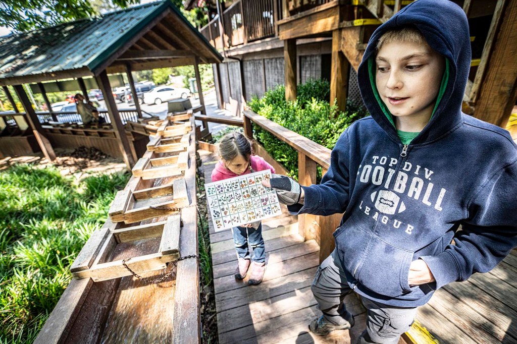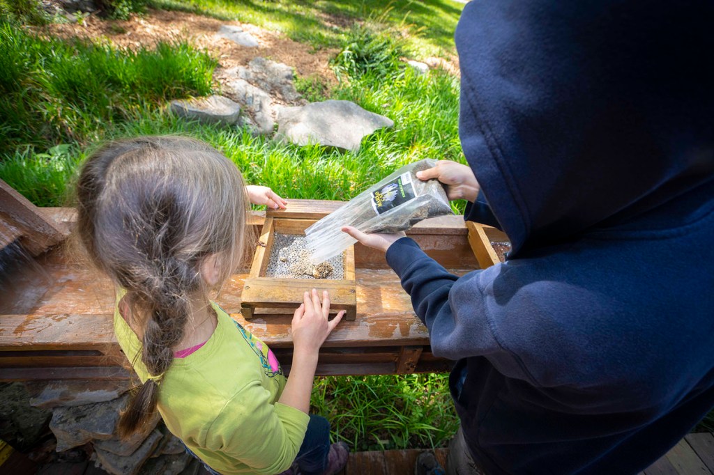 Po zwiedzaniu jaskiń dzieci naciągają mnie na nieodzowny zestaw „poszukiwaczy złota” czyli worek piasku z „zatopionymi” w środku imitacjami minerałów. Zawartość worka następnie zostaje przesypana do sitek, przez które przepływa woda wypłukując piasek zostawiając „skarby”.
