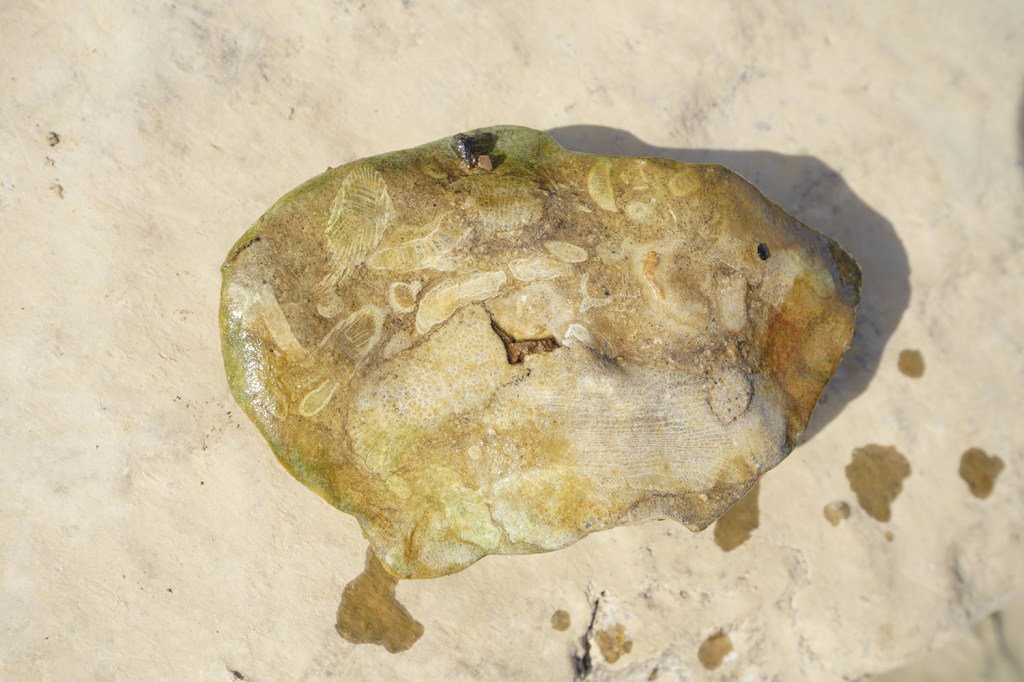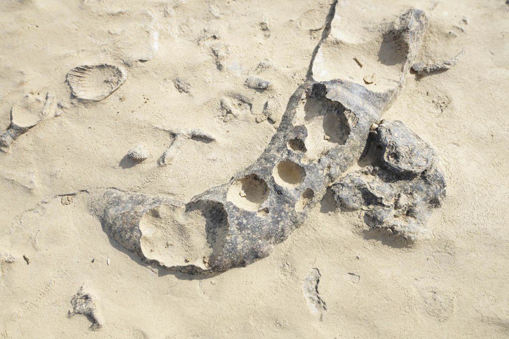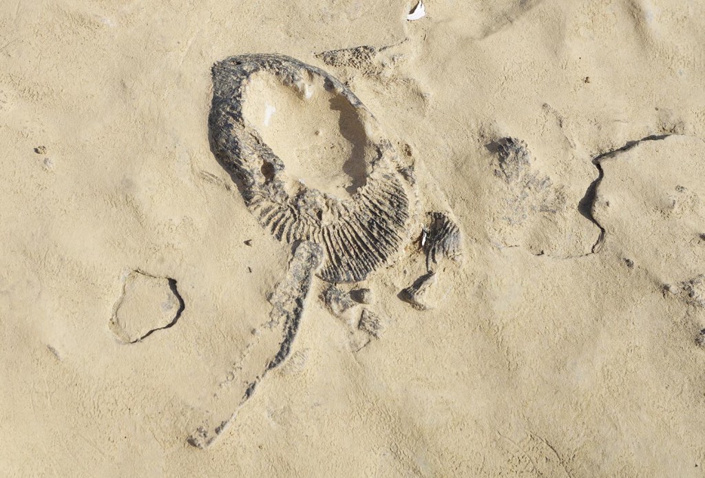 Tu znajdują się niezliczone ilości skamieniałych morskich zwierząt „zatopione” w skałach podłoża, po których po prostu się spaceruje….