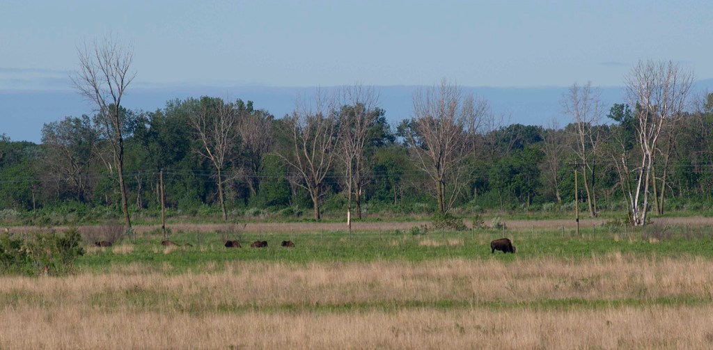 W 2016 roku Nature Conservancy wprowadziło do swojego projektu renowacji prerii stado 23 bizonów. Obecnie na obszarze jednej mili kwadratowej żyje tu ich ponad 90. Nature Conservancy w 1996 roku zakupiło tu 6,500 akrów ziemi, którą obsadzono 600 gatunkami roślin preriowych. Głównym celem jest przywrócenie naturalnego środowiska preriowego, które istniało tu ponad 200 lat temu. Żeby wszystko stało się doskonale funkcjonującym ekosystemem utworzono też rezerwat bizonów, które są nieodzownym i kluczowym elementem krajobrazu prerii. Przyjeżdżając tu mamy 100% szansę ujrzenia tych majestatycznych zwierząt. Mogą wypasać się w każdej części ogrodzonego terenu, więc najprostszym sposobem dotarcia do nich jak najbliżej jest przejechanie dookoła rezerwatu. My byliśmy tu wczesnym rankiem zaczynając od głównego miejsca widokowego ulokowanego w N części (Main Bison Viewing Area).