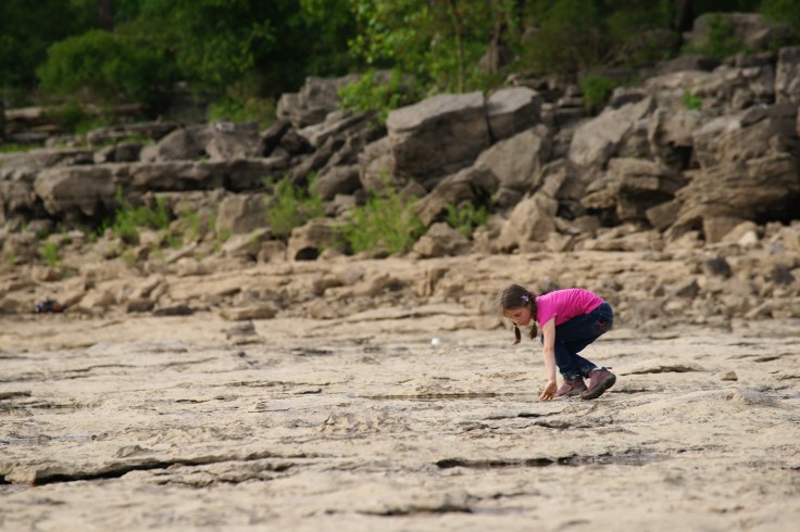 Wracając do hotelu zajeżdżamy jeszcze do parku stanowego Falls of the Ohio, którego główną atrakcją są największe na świecie odsłonięte złoża skamieniałości z okresu Devonu. Ponad 390 milionów lat temu obszar ten pokryty był ciepłym tropikalnym płytkim morzem. Znaleźć tu możemy więc skamieniałe koralowce, gąbki, stromatoporoidy, liliowce, ramienionogi, trylobity itp….Zidentyfikowano tu aż ponad 600 różnych gatunków morskich. Interpretive Center oferuje bardzo ciekawe interaktywne wystawy dotyczące geologii terenu…. Ale jest niestety już zamknięte. Schodzimy więc do koryta rzeki Ohio.