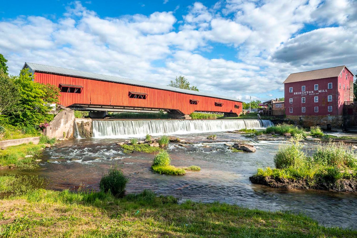 Jedziemy następnie polnymi drogami do Bridgeton Grist Mill & Covered Bridge (8104 Bridgeton Rd, Bridgeton).