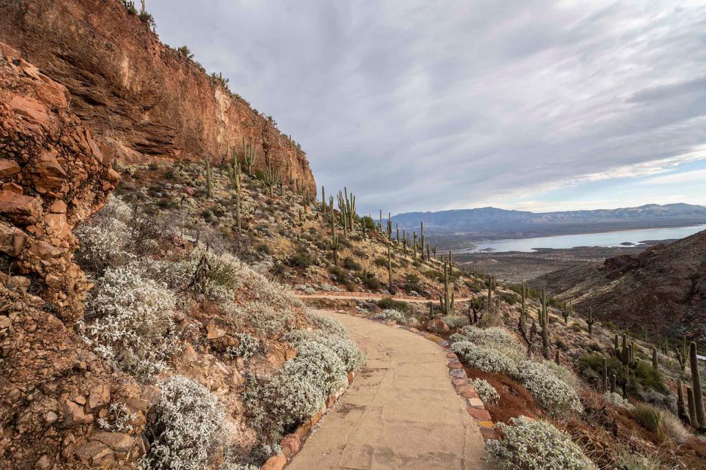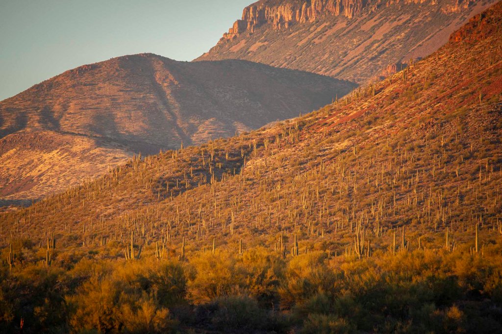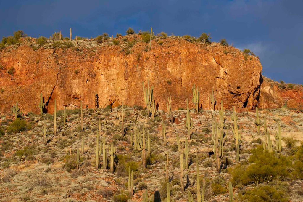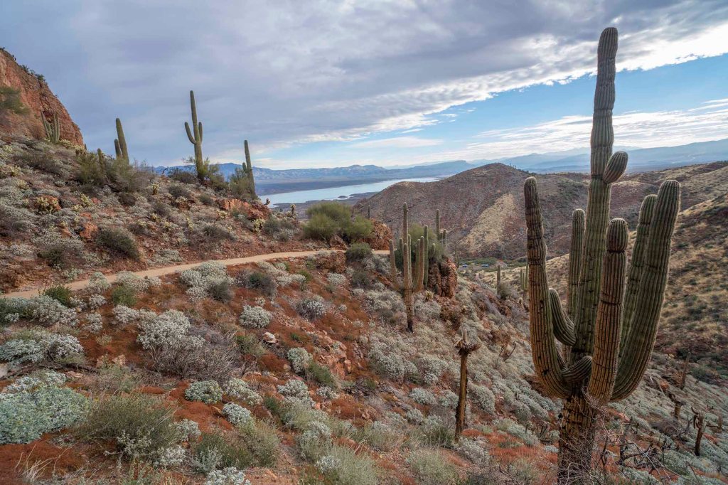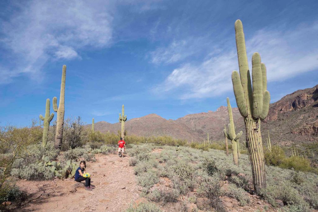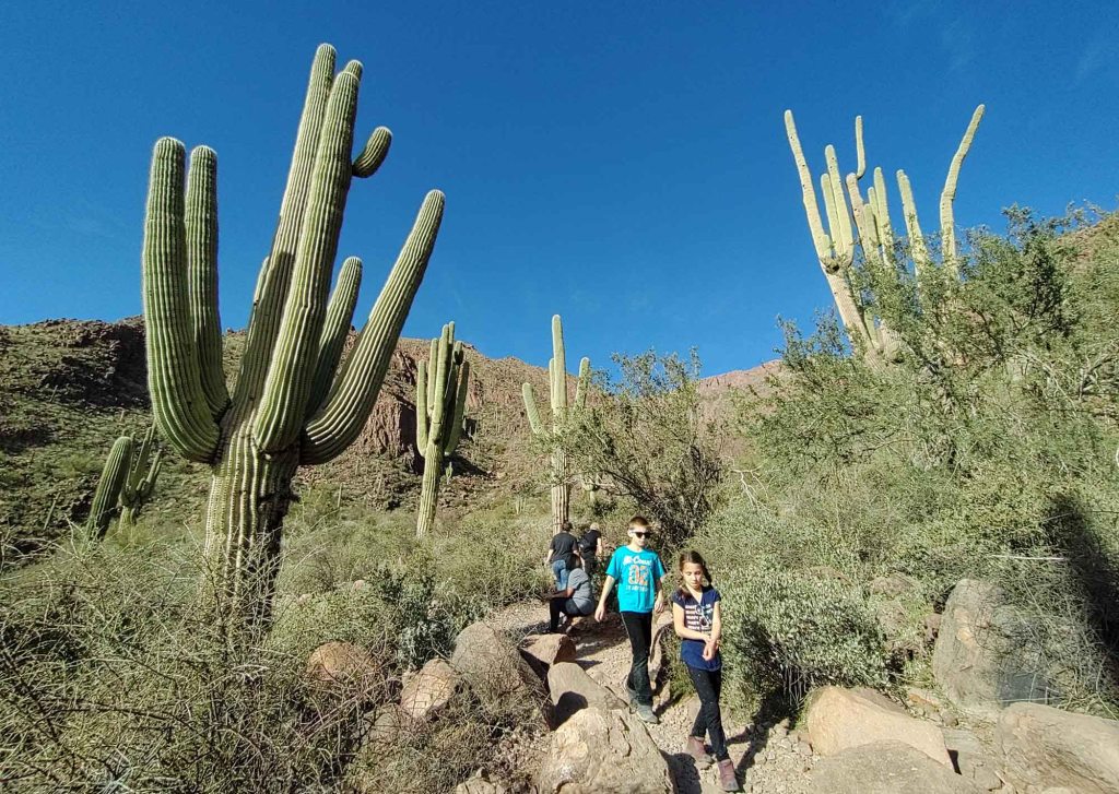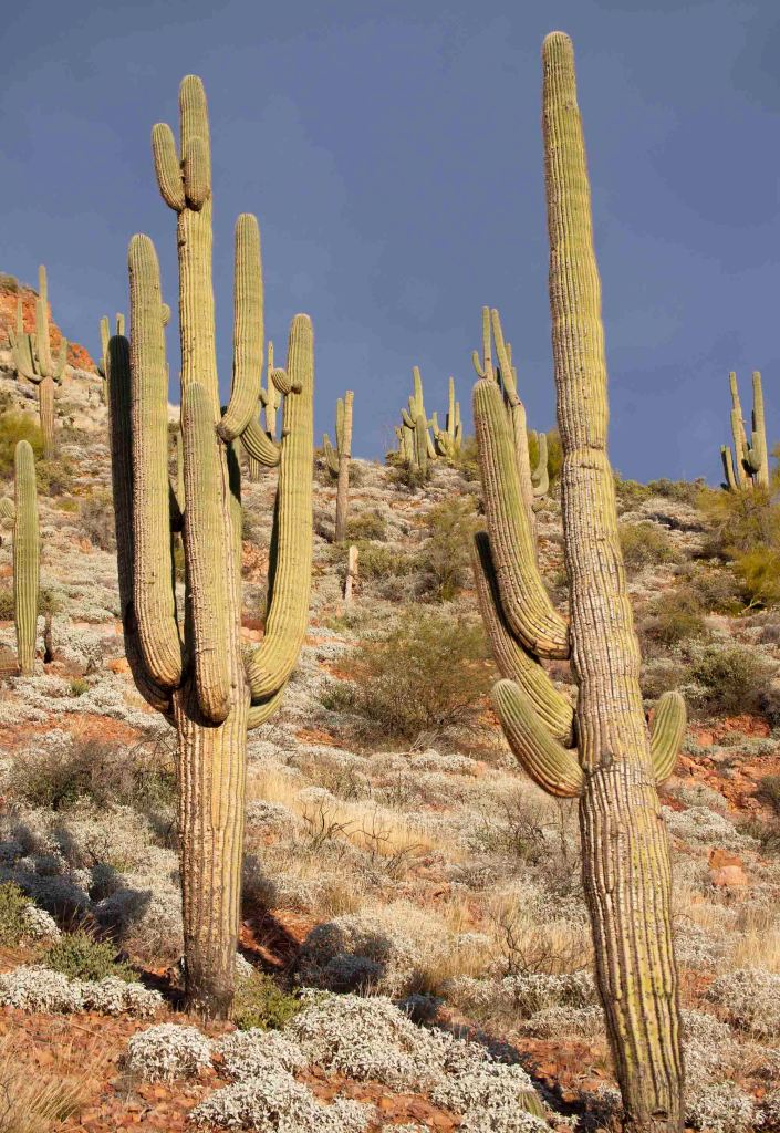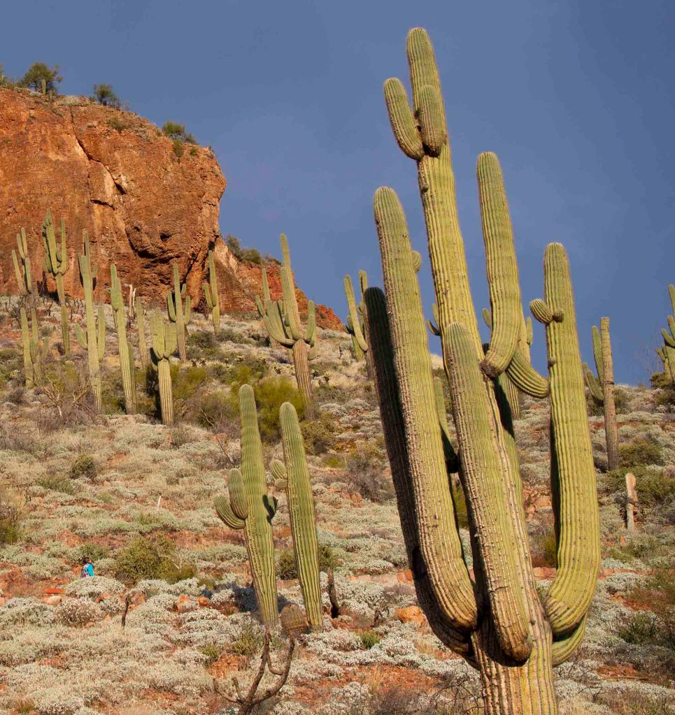 Przez całą drogę prowadzą nad kaktusy – wielkoludy, czyli saguaro, których wysokość dochodzi nawet do 18 metrów. Rekordowe okazy mogą osiągać obwód do 2 metrów!!! Saguaro zakwita po raz pierwszy w wieku około 75 lat i wtedy pojawiają się też pierwsze rozgałęzienia. Kwiaty zapylane przez nietoperze i owady otwierają się nocą i są zamykane po popołudniu.