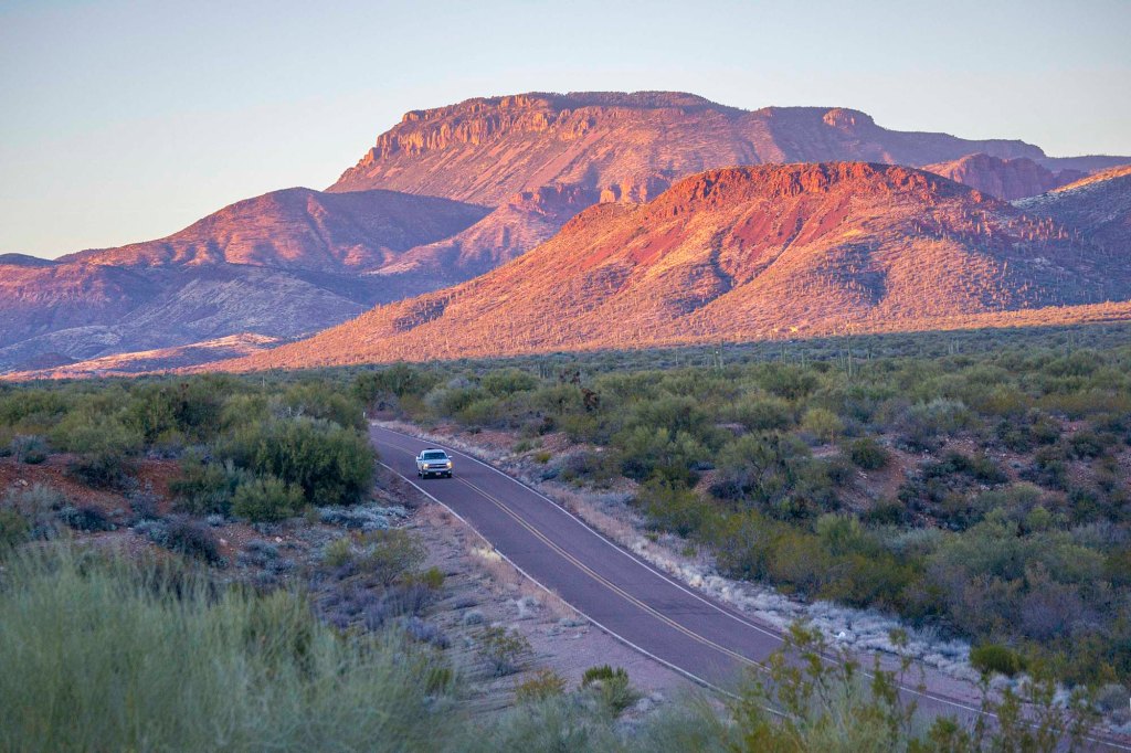 Wyjeżdżamy z Globe o świcie kierując się na północ w kierunku Theodore Roosevelt lake.