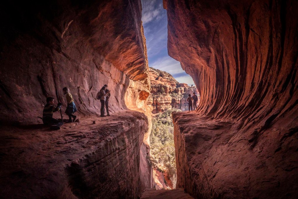 VORTEX: Hmmmm 😊 Tu zacytuję…… „Uważa się, że są one wirującymi ośrodkami energii, które sprzyjają uzdrawianiu, medytacji i samopoznaniu. Są to miejsca, w których Ziemia wydaje się szczególnie ożywiona energią…. Wiele osób czuje się zainspirowanych, naładowanych energią lub podniesionych na duchu po wizycie w vortexie”. Szczerze mówiąc uważam, że przybywający tu ludzie czerpią moc z energii wypalanych skrętów… których zapach unosi się na szlakach turystycznych…. Sedona to bardzo komercyjne miejsce, otoczone pięknymi czerwono-pomarańczowymi piaskowcami, do którego zjeżdżają ludzie mający niewiele wspólnego z prawdziwym trekkingiem. Przemysł „vortexowy” napędza tu corocznie około 3 milionów turystów…. Organizatorzy słono płatnych wycieczek są tu zajęci na okrągło…. (https://www.sedona.net/vortex-tours).