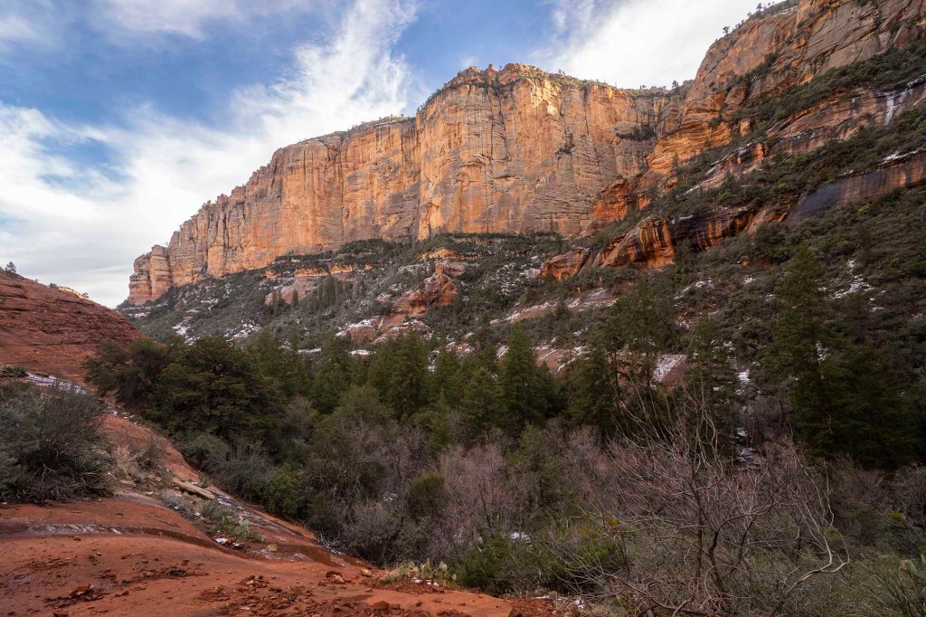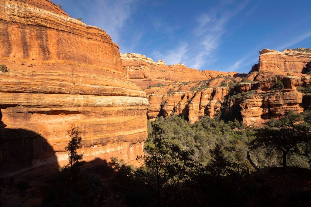 Najwyżej „panującą” warstwą skalną w okolicy Sedony jest tzw. wapień Kaibab.