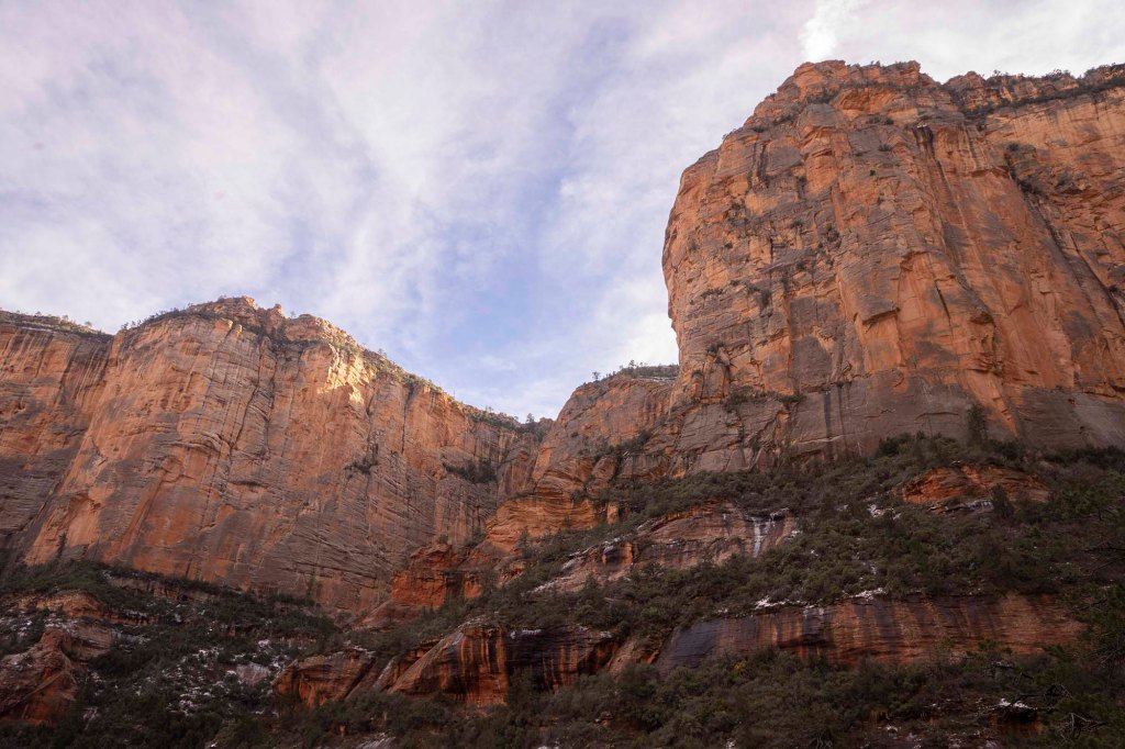Rzucamy plecaki przy znaku „End of trail” i podchodzimy do końca półki skalnej po prawej stronie. To miejsce jednak szybko ginie w cieniu….. i niepowtarzalna okazja zrobienia dobrego zdjęcia znika bezpowrotnie…..